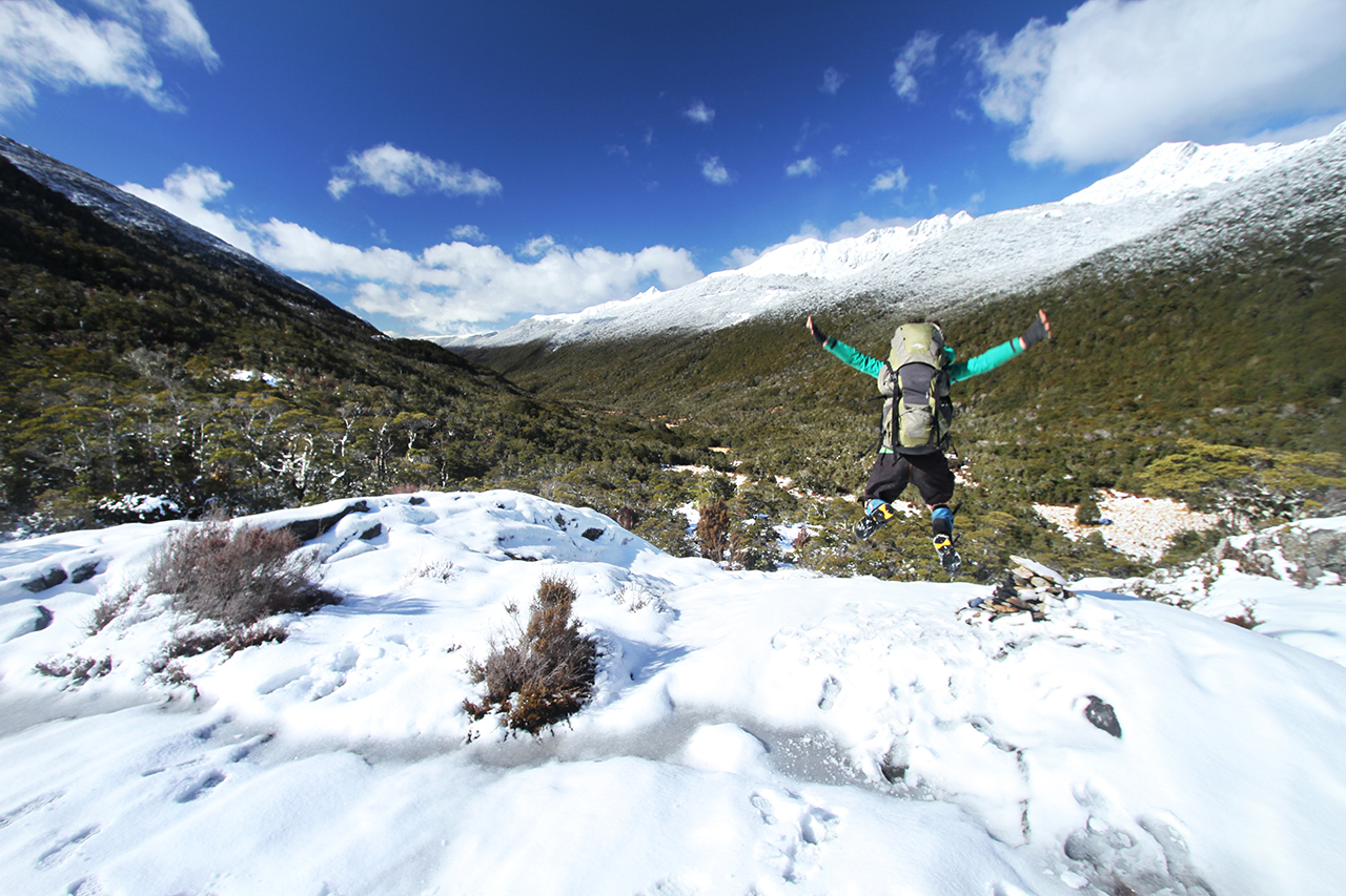We climbed to the treeline, with the entire Cobb Valley rolled out at our feet, enclosed by snow-capped ranges. There couldn’t have been a better place to conclude our celebration of tramping in the snow.