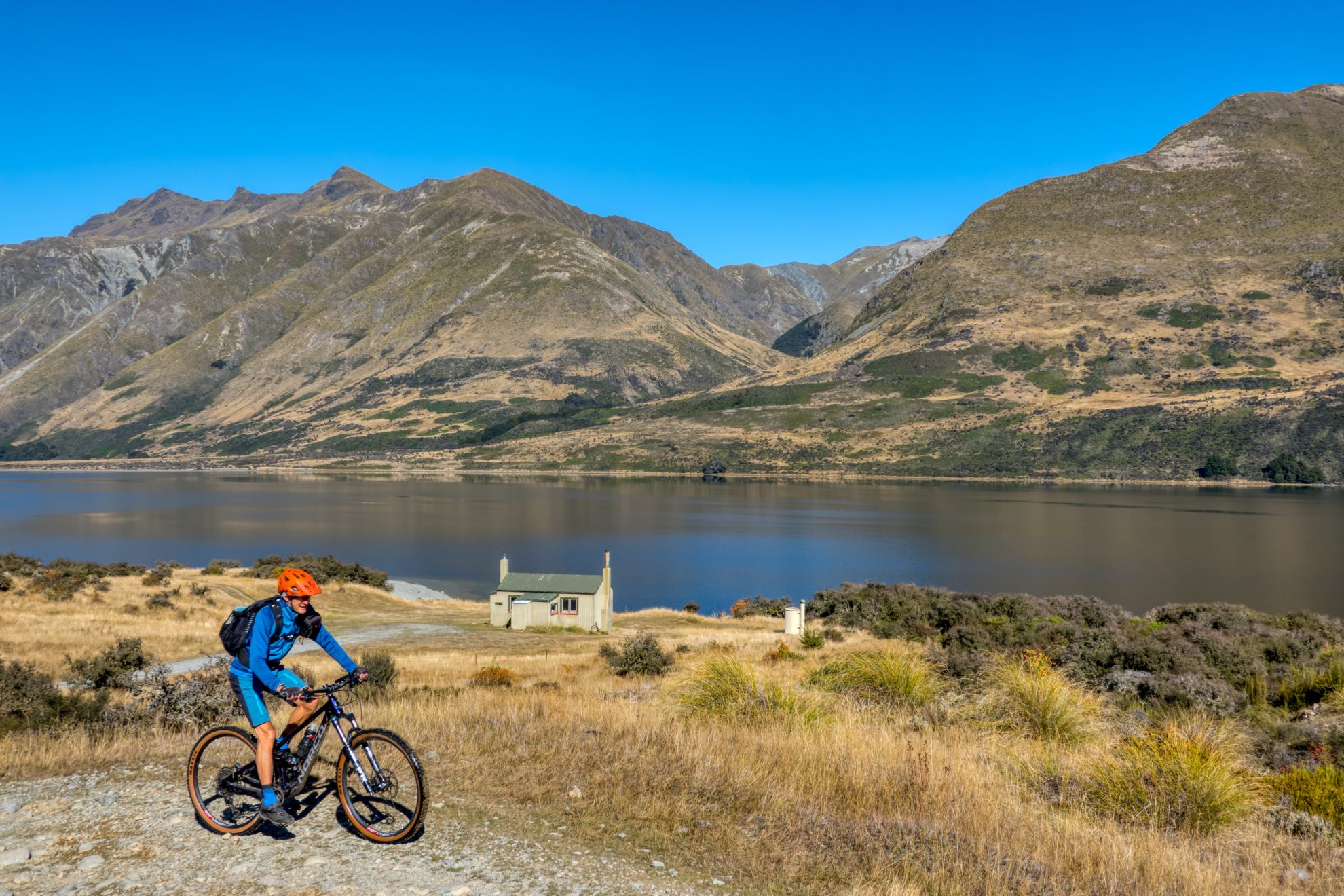 After 3km the track climbs above and away from the lake through former farmland. On a clear day, West Burn Hut can be seen on the far side of the lake. You can access this dirt-floor relic by boat or from the top of the lake on a rough unmarked track.
