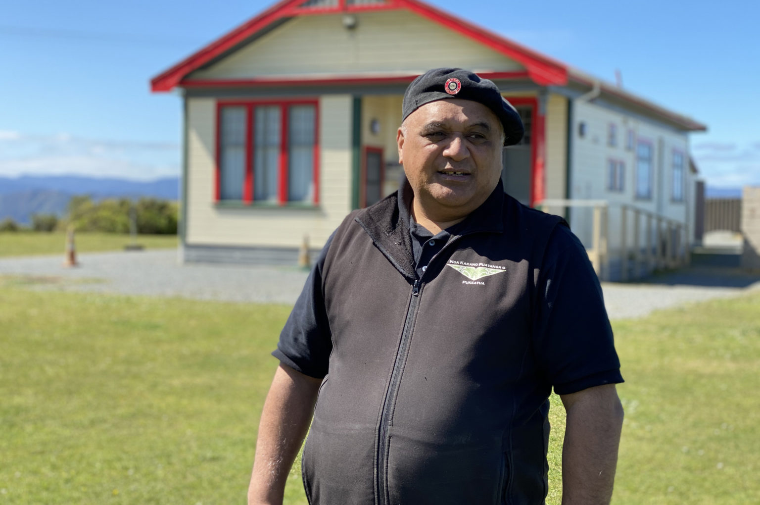 Marae treasurer Harry Meinders, who is on-site building, joins us in the hot sun with cups of tea.