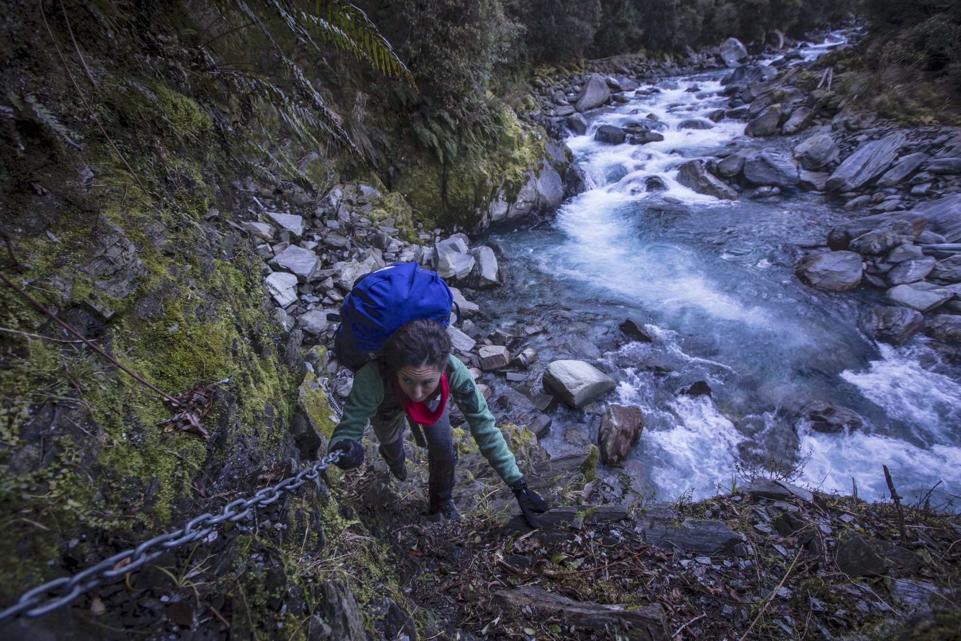 From the hut, there’s an easy pack track which climbs gently above the river. Every inch would have been dug with pick and shovel: a testament to the resilience of the gold miners who built it. Through the bush, we caught glimpses of the river over 100m below.