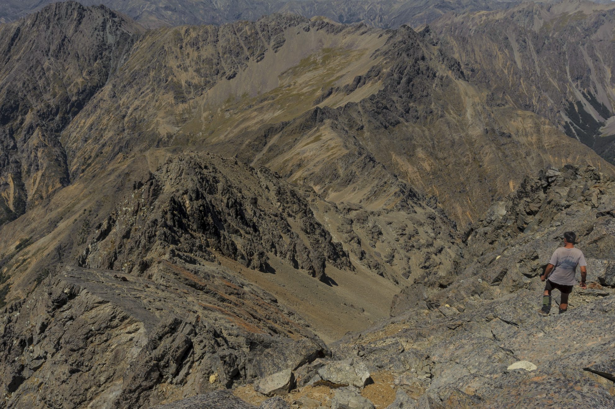 Perhaps we’d have been better off parking, given the driving speed is slightly slower than our walking. But Joe is determined to nurse his ageing Subaru to the end of the line: Boulder Stream forks. It’s a junction among the beech forests, tucked beneath an array of Marlborough’s famously dry mountains, some of which reach over 2000m.