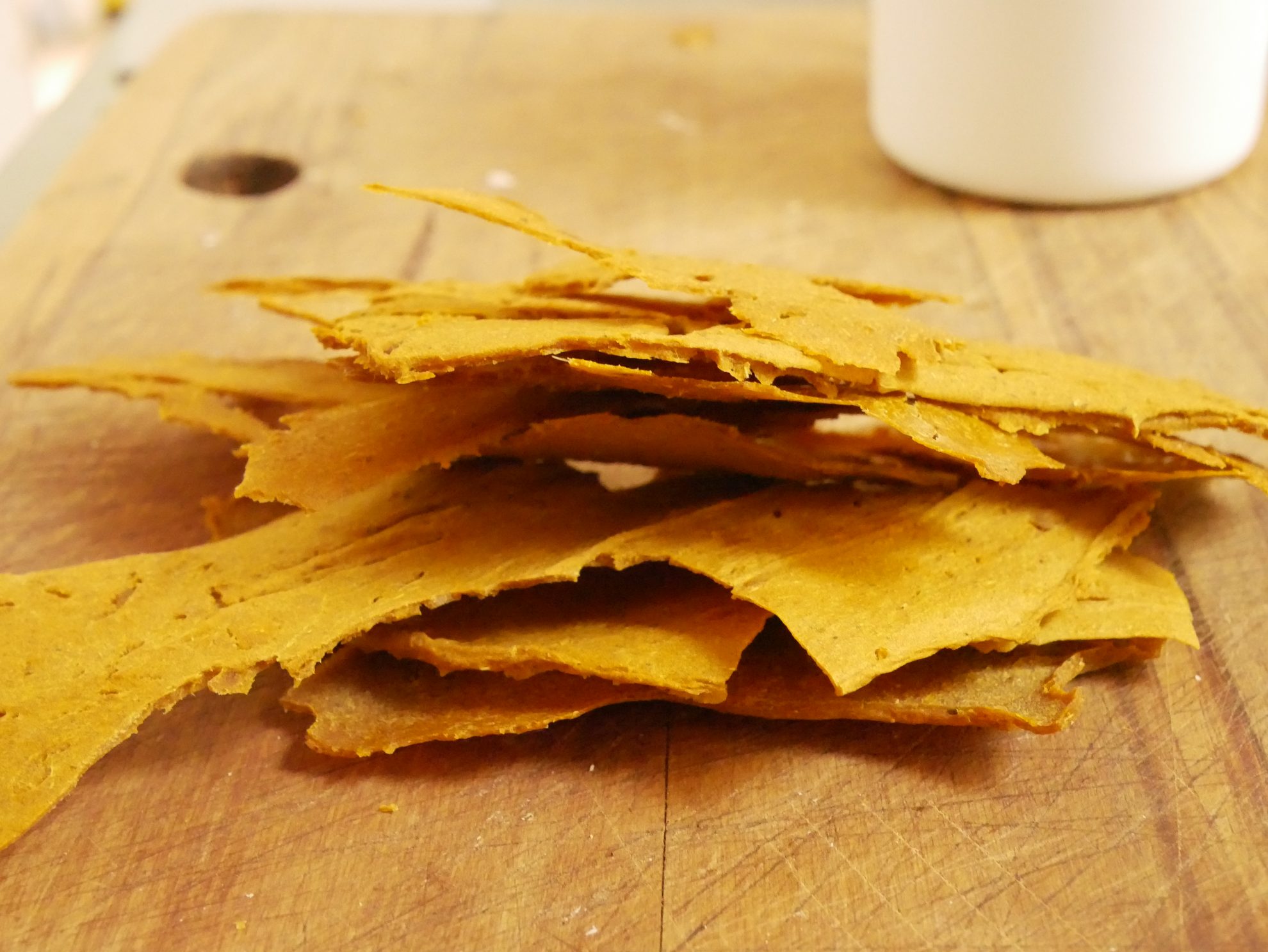A couple of days into a tramp, I often find myself dreaming of fresh fruit and veggies. I have given up trying to carry them on multi-day tramps because, apart from the added weight, they always ended up bruised and wilted. This recipe is a play on traditional fruit leather, using veggies instead. When dehydrated, it often ends up more like chips and is very moreish.