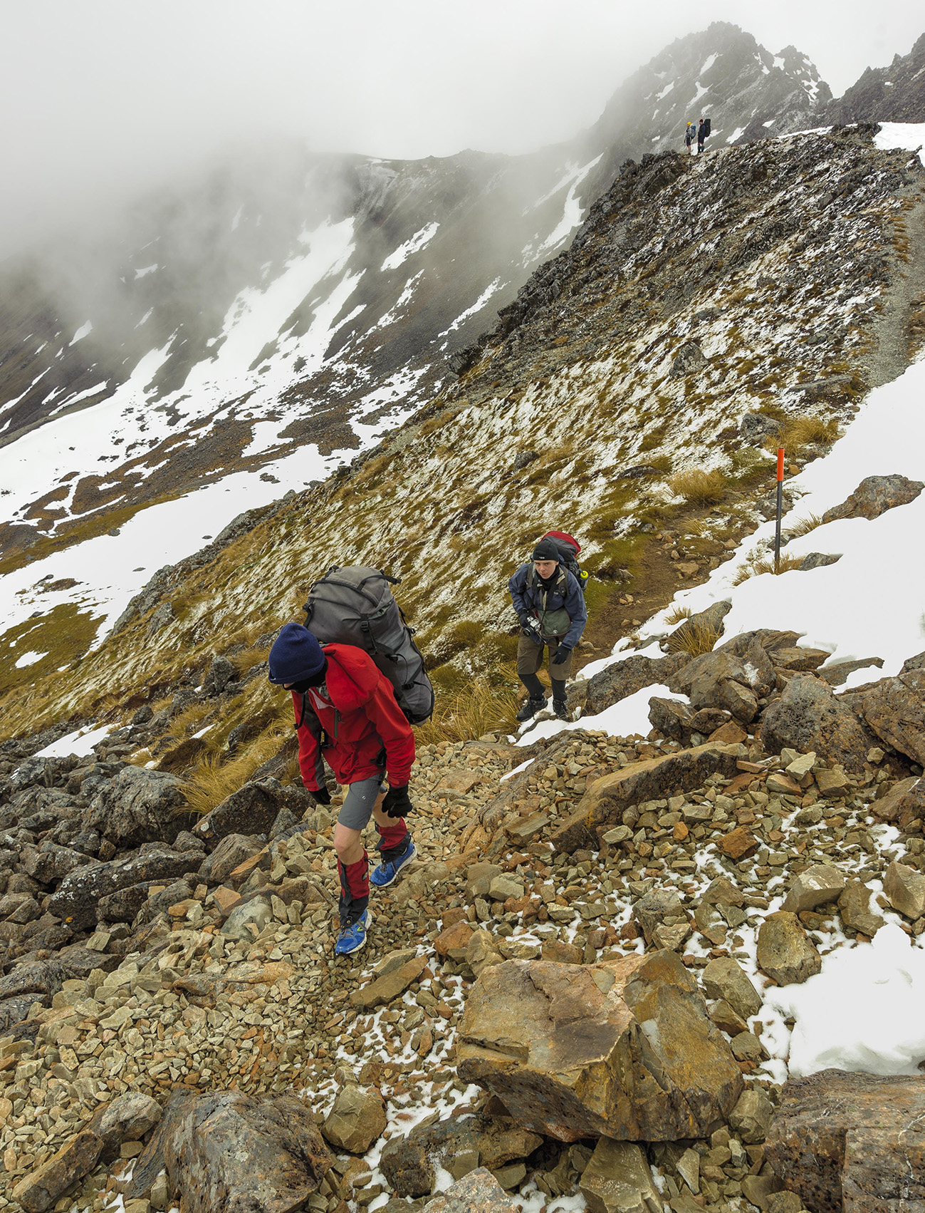 Young tourists, unprepared for New Zealand mountain conditions, are lured by the broad easy ridge to keep going, not knowing how far there was to go, how much higher the ridge gets, how it gradually gets more rugged. Nor may they know how energy gets sapped while fighting that nagging voice that urges you to just keep going. Hypothermia, exhaustion, disorientation and – sometimes – tragedy.