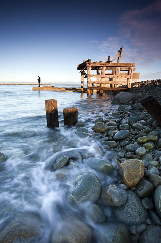 I walked along the Boulder Bank for two hours in the pre-dawn murk, past quirky baches, the lonely lighthouse and a sleeping seagull colony to the end of this natural spit. I set up my DSLR on a tripod, and programmed the wireless remote to fire off frames while I trotted off to become part of the picture.