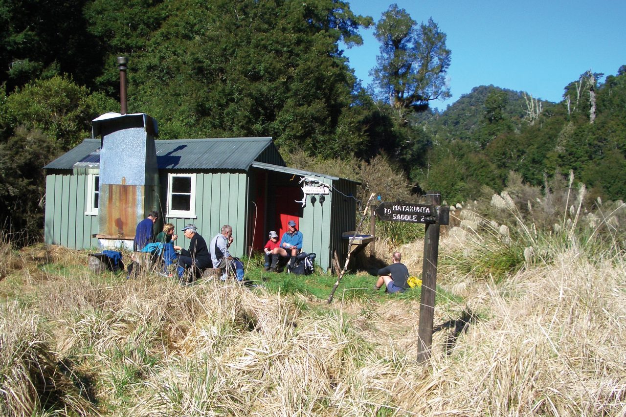 The track continues to the Lower Matakuhia Hut, a further five hours away. Although relatively well marked, this track is a challenging route and the delightful six-bunk hut is unfortunately destined for removal in the not-too-distant future.