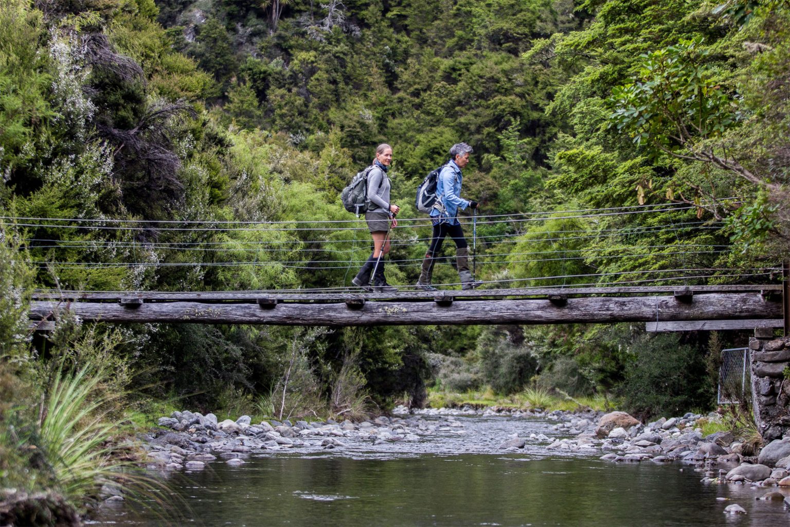 On the second day the trail passes through a gorgeous forest protected under non-grazing covenants. An intensive trapping programme here has resulted in a phenomenal increase in birdlife. Walkers spend their final night at Bush Hut, a 1930s musterers’ cabin built from red beech.