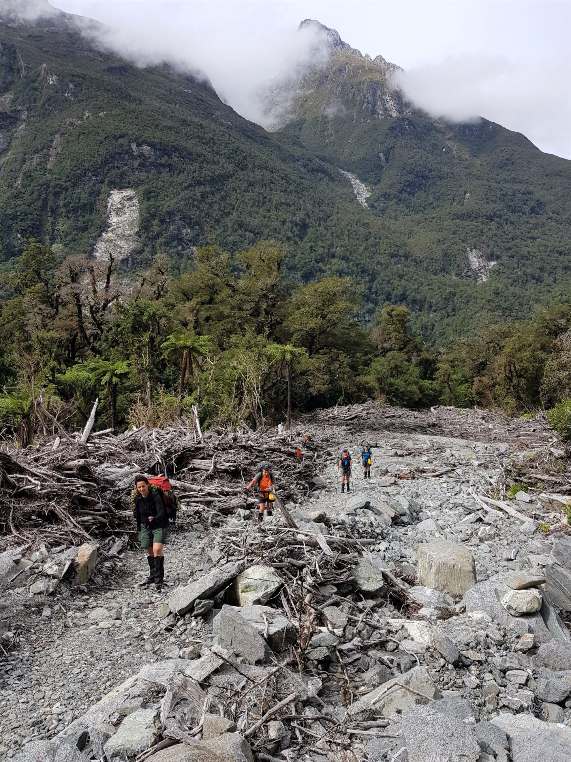 This year, I climbed the pass in misty gloom with no guide to distract me. My own party included some learned botanists but they’d set off much earlier. There was absolutely no view on the damp, freezing pass and I was glad to find a modern, enclosed shelter rather than 1984’s rough A-frame shack. Trampers heated soups and brews on the gas cookers inside and, mindful of our hut warden’s advice not to wait around for the weather to clear, quickly headed down. It was good advice because just below the pass there was warm sunshine, also I was lucky enough to spot a tuke/rock wren, flitting over the shrubs. This species is endangered and just a few pairs live around the pass. The long descent into the Arthur Valley was more of a gradual zigzag than the steep knee-jerker I recall from 37 years before.