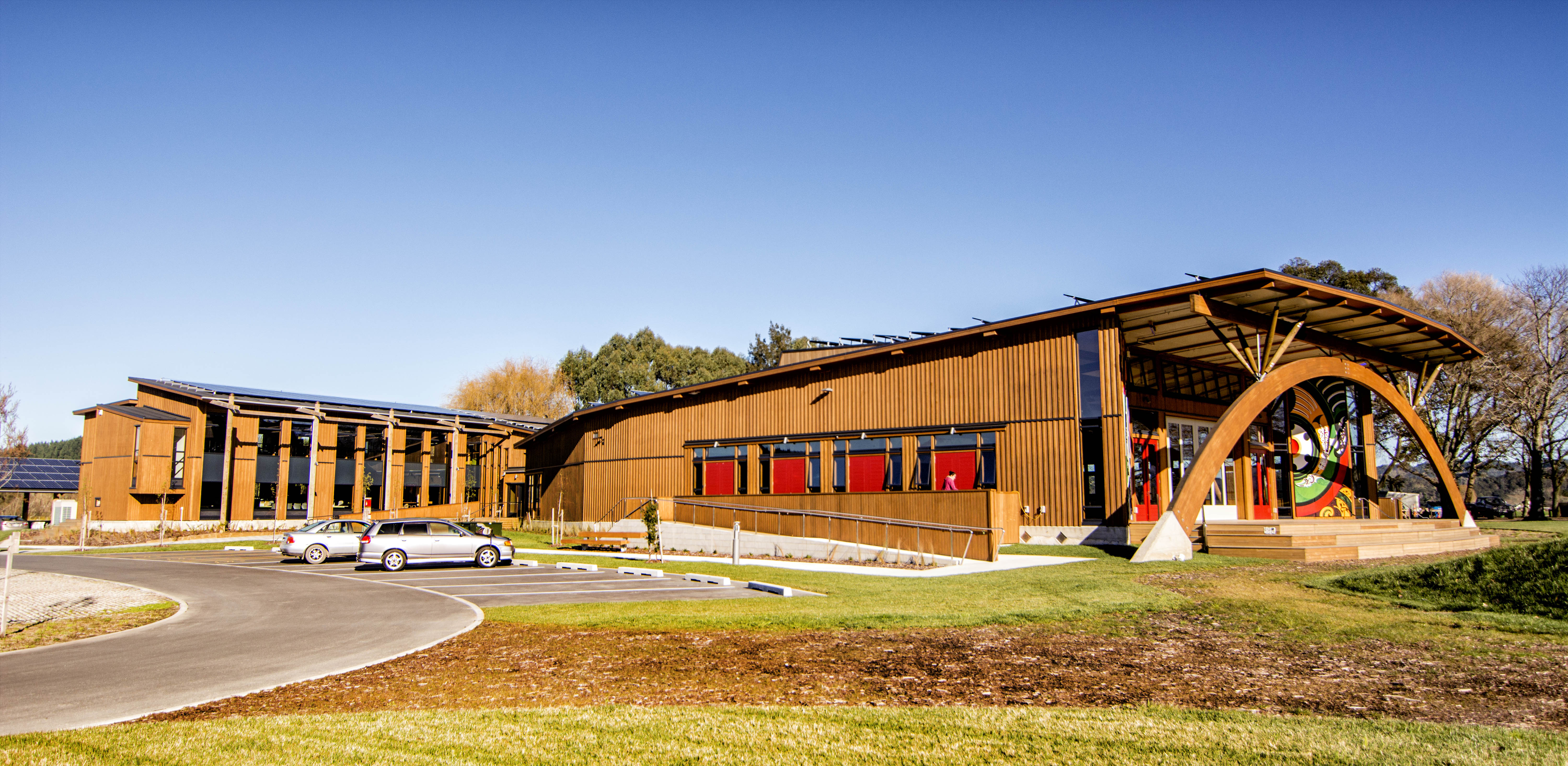 The building at Tāneatua, Te Kura Whare, generates renewable energy and collects and treats its own drinking water and greywater.