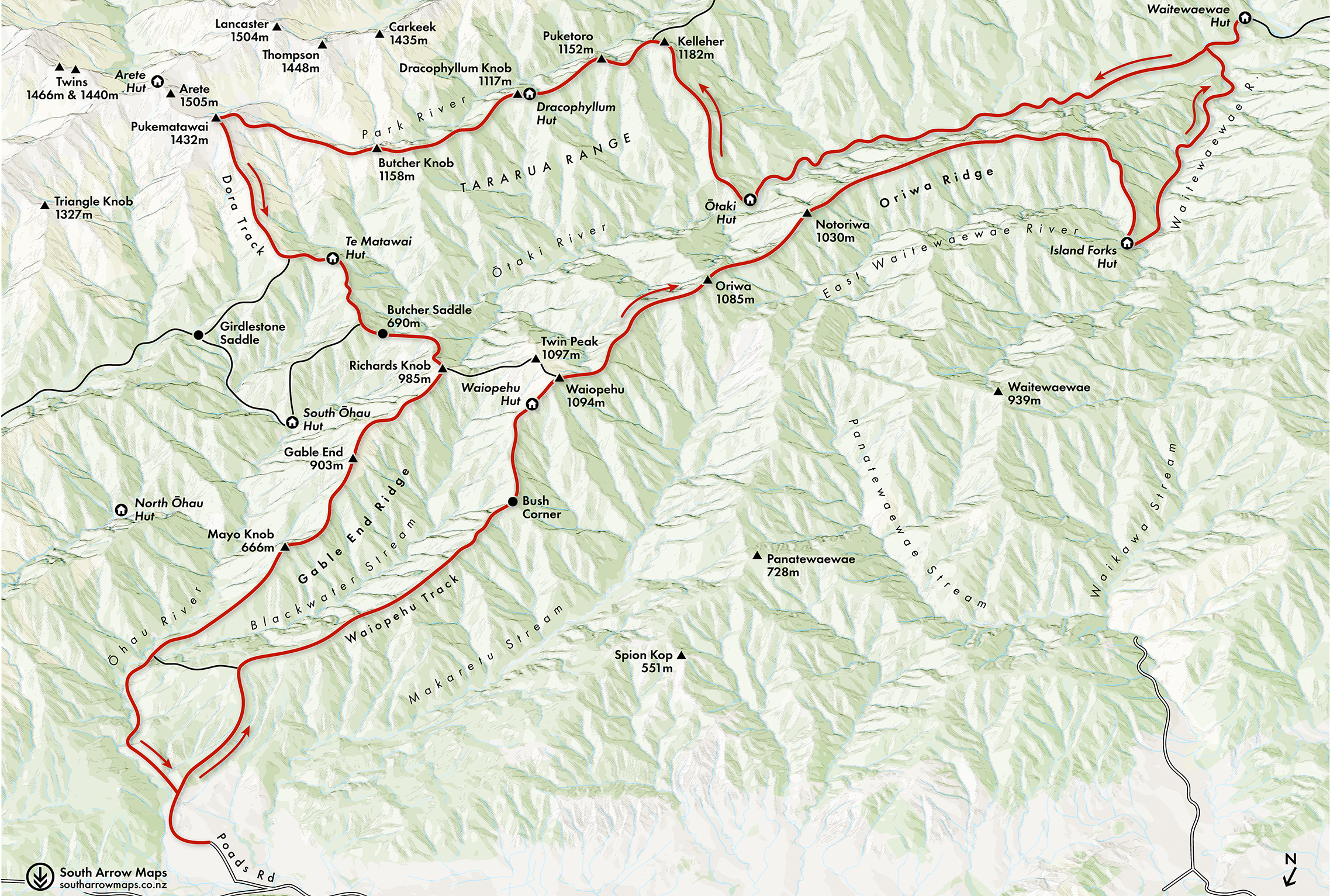 So it was that in the weeks leading up to King’s Birthday weekend I formed a plan with James, a stranger I had just met through the tramping club, to link the remote huts surrounding the Ōtaki. We would begin from Poads Road and take in Waiopehu Hut, then continue counter-clockwise down Oriwa Ridge, through Island Forks, Waitewaewae, Ōtaki, Dracophyllum and Te Matawai huts before re-emerging four days later at Poads Road.