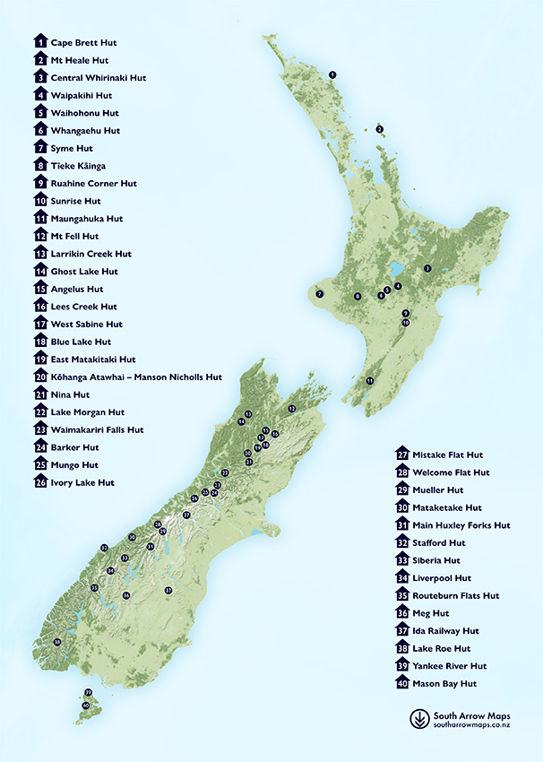 So here they are: the best of the best, huts with locations ranging from the verdant kauri forests and stark volcanoes of the north, to the gritty granite coastlines of Rakiura in the south, and the multitudinous mountains in between.