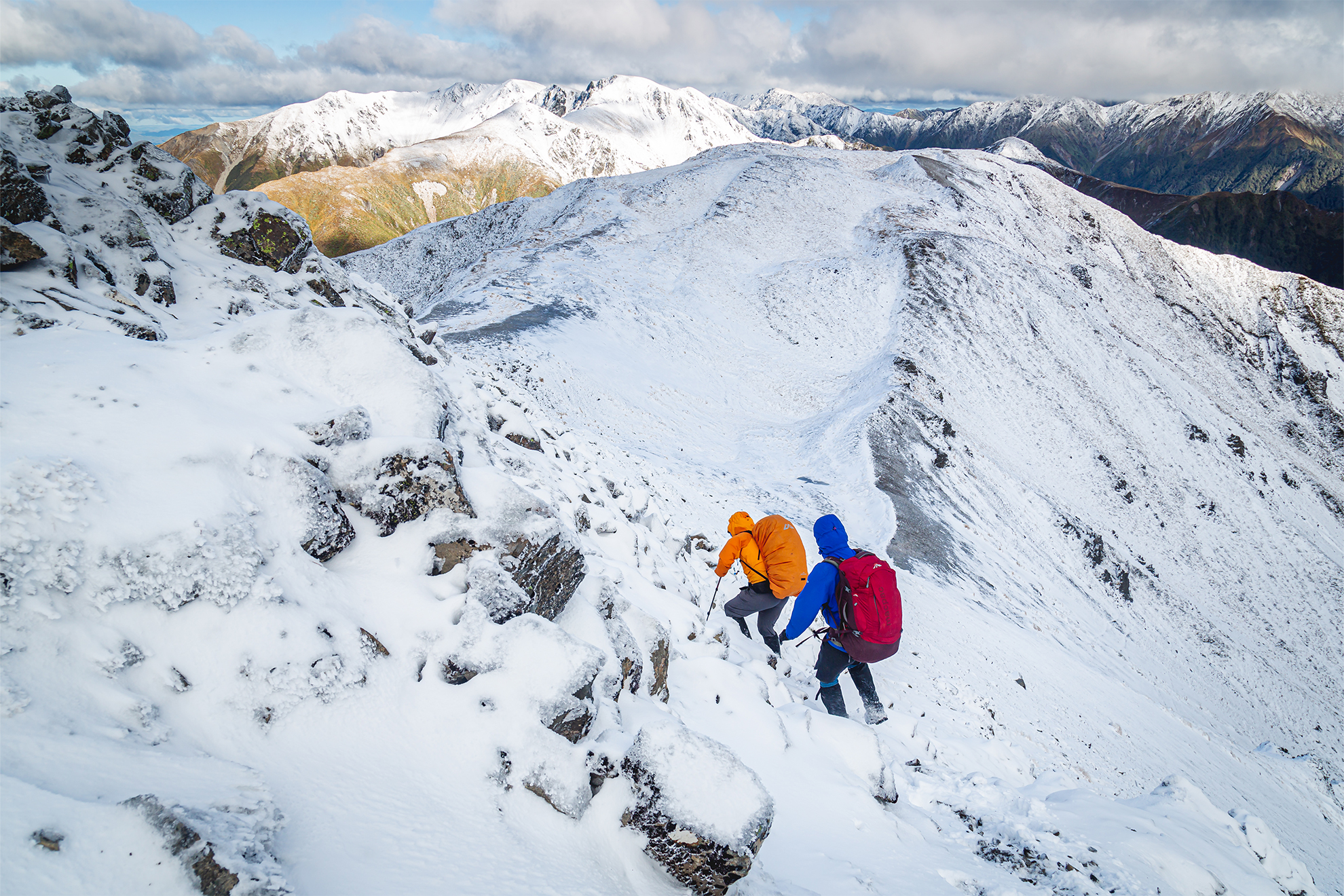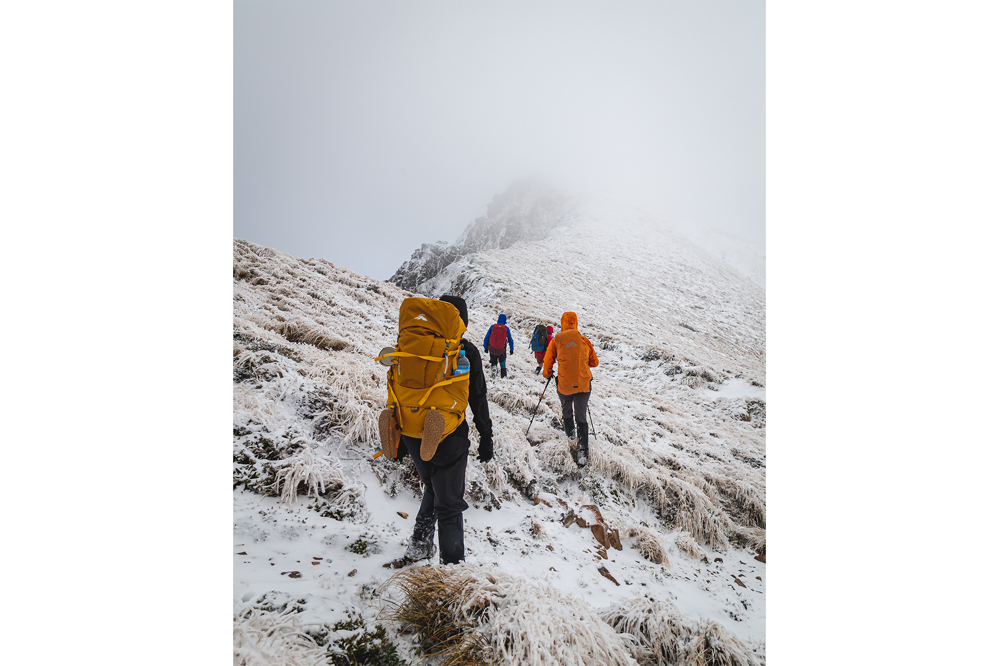 But let’s rewind to the previous night where this story really begins. We were five trampers happily starting up the track to Sunrise Hut in Ruahine Forest Park, thoughts firmly fixed on snuggling into our sleeping bags. It was 10pm, after all. I’d left my ice-axe in the car; we would turn around if conditions got gnarly.