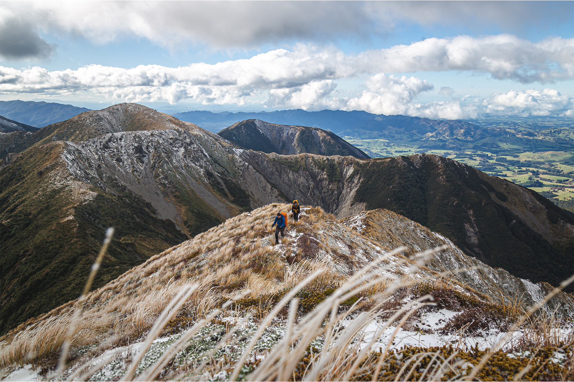 The wide, benched track wound playfully through rimu and ponga forest. Three NZ Forest Service cullers spent three winters in the 1980s cutting this track by hand: an impressive feat. We caught the occasional glimpse of the twinkling towns of Hawke’s Bay stretching for miles.