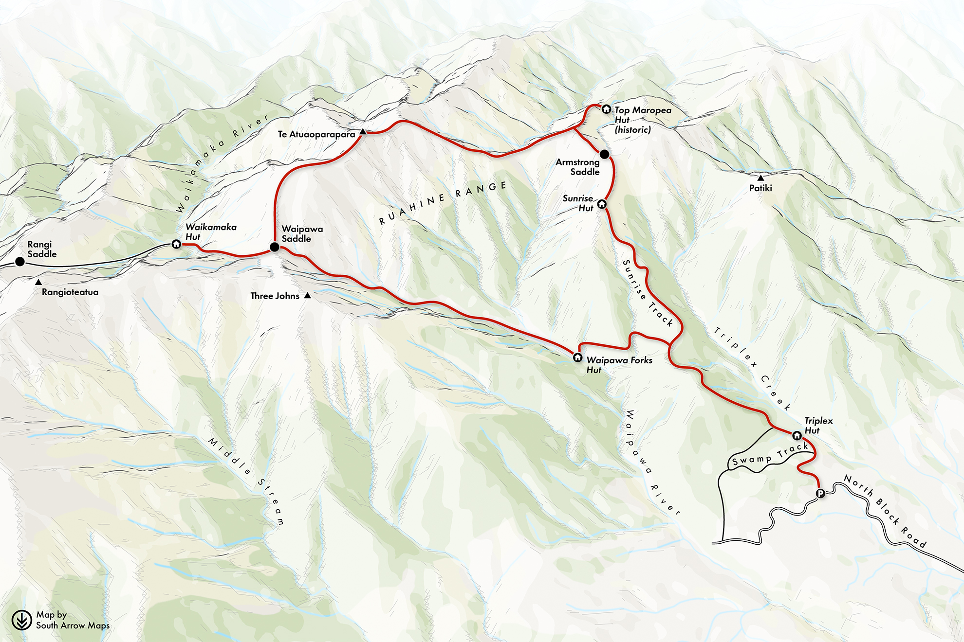 In July 1935 Hamish Armstrong crashed his de Havilland Gypsy Moth into the saddle in some particularly bad weather. The wreckage was found after two weeks; the only sign of Armstrong was a shirt branded Triple-X. (A hut near the trailhead now carries this name).