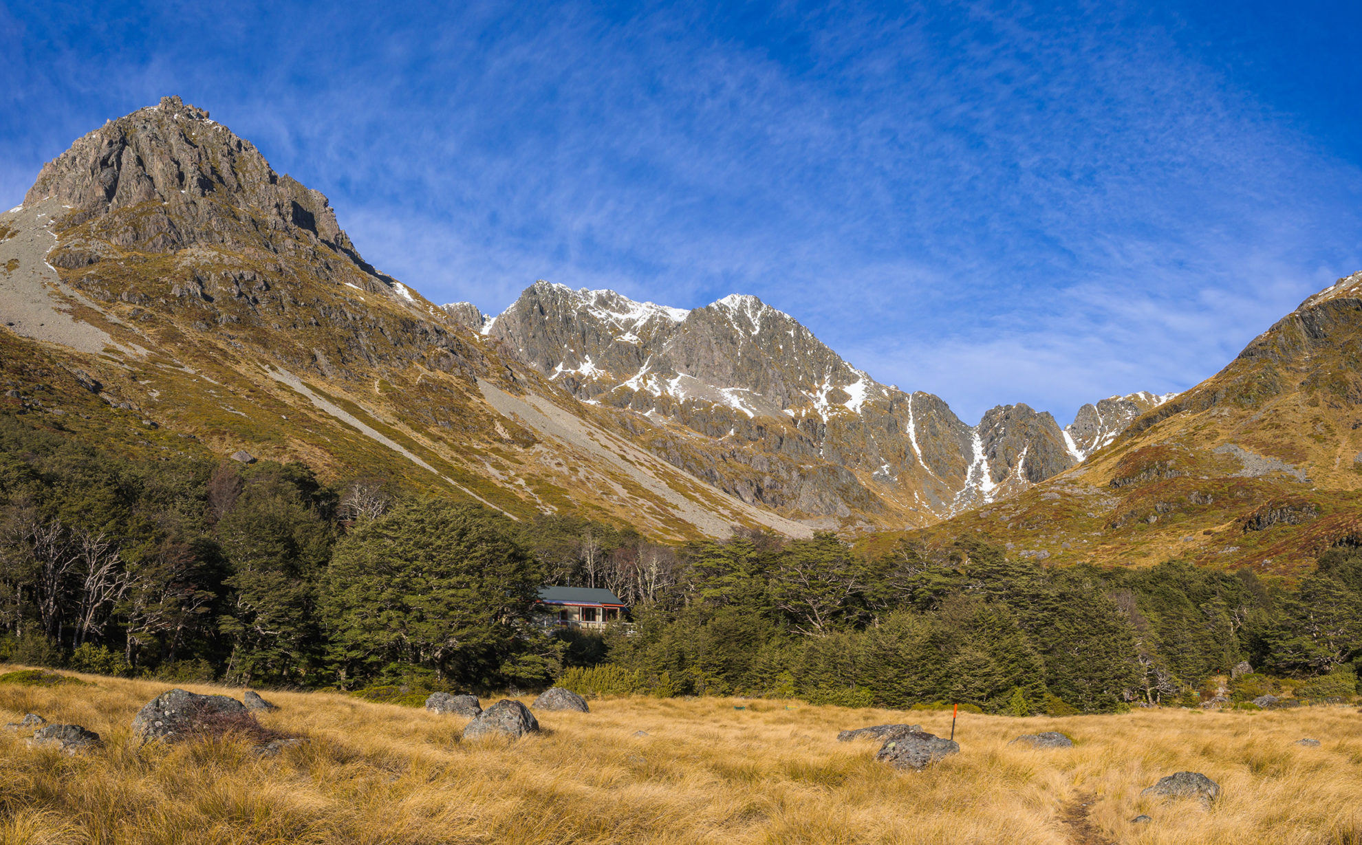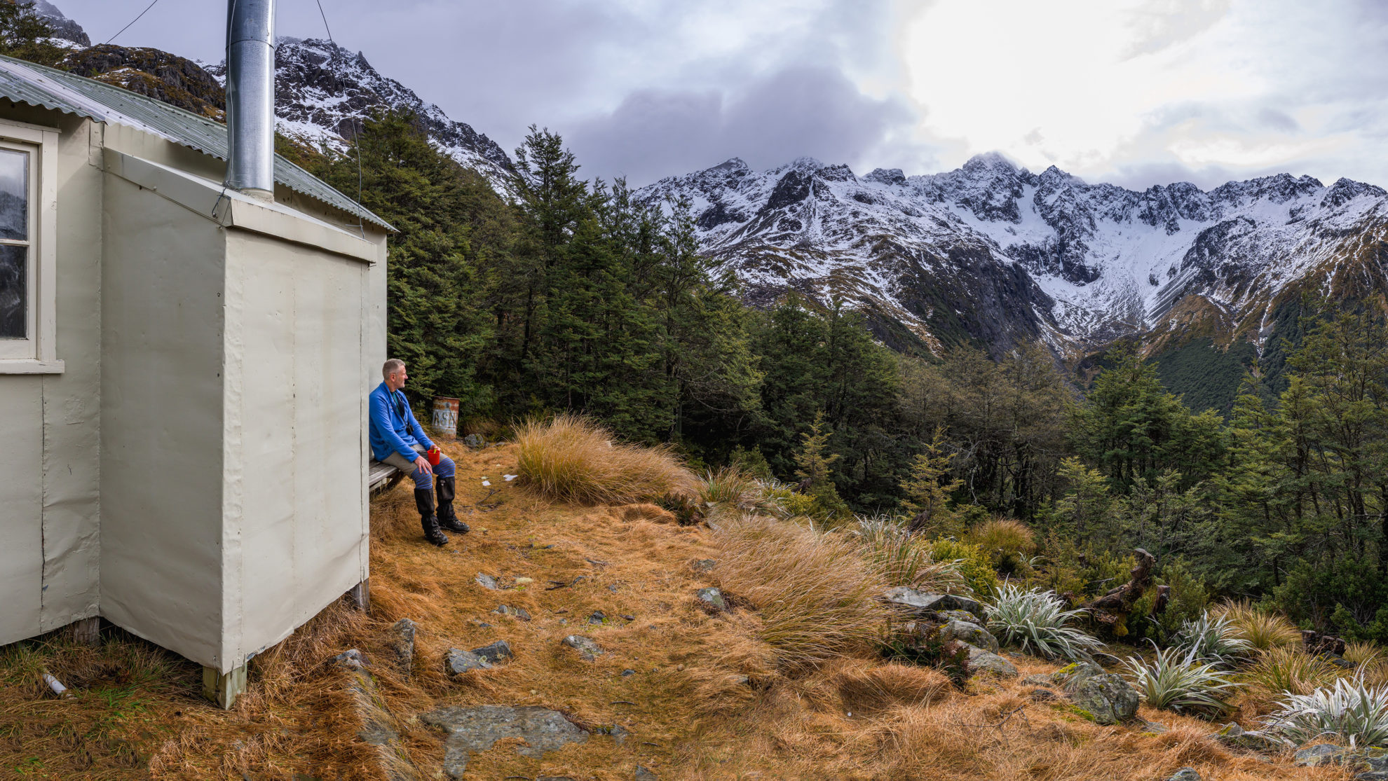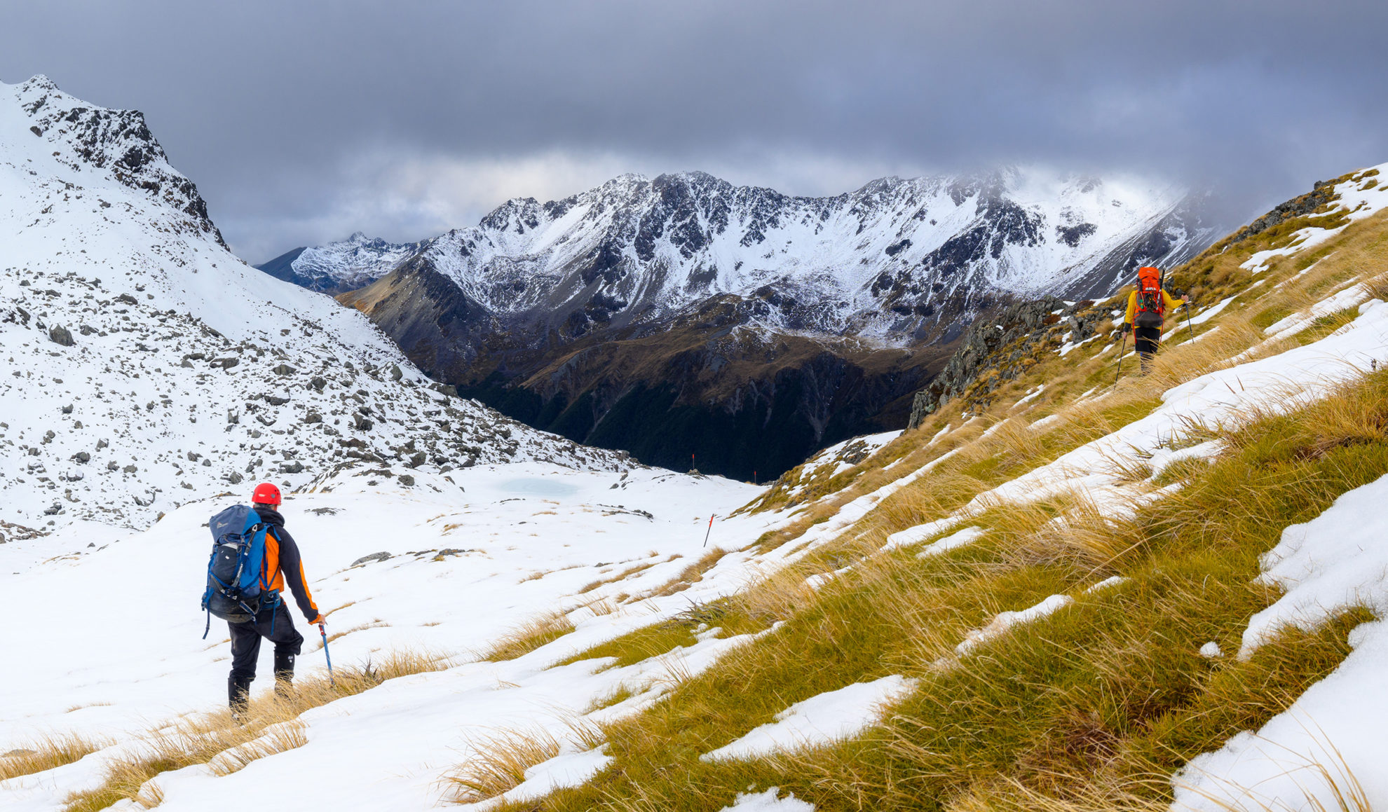 In winter, and with the New Zealand border closed to overseas hikers, John Tait Hut proved quiet so we spread out luxuriously. However, high cloud and intermittent drizzle meant indecision gnawed away at us. What to do? Climb or tramp? And if we tramped, we still had all this climbing gear to carry.