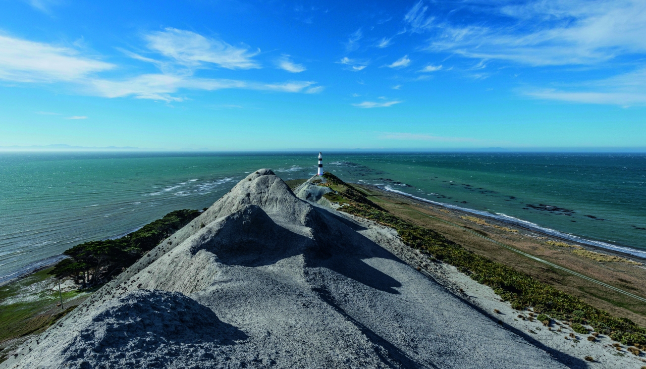 The lighthouse can be reached from Marfells Beach, a full day’s return walk. Spring high tides can block access around the foot of bluffs.