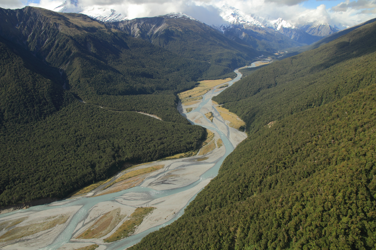 For those with less rafting experience, but a desire to travel through one of New Zealand’s most amazing wilderness environments, then the Landsborough River will deliver. The two to three-day, 35km-plus trip meanders along crystal clear water through the Landsborough Valley. It begins beneath the glaciers of Mt Dechen (2630m) in Aoraki/Mt Cook National Park and runs south, parallel to the Southern Alps, before emptying into the Tasman Sea at Haast.