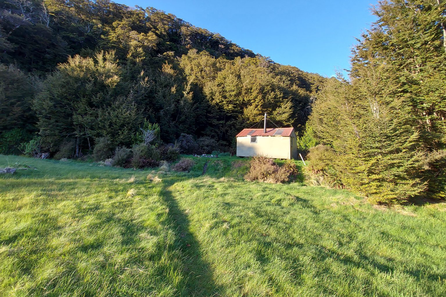At the far side of Turkey Flat the track heads for the bush to follow a high-water route above the Waimakariri, but unless the river is flowing hard against its true right bank, attempt to continue up the riverbed – it’s much easier going. Anti Crow Hut is in a clearing within sight of the bank.