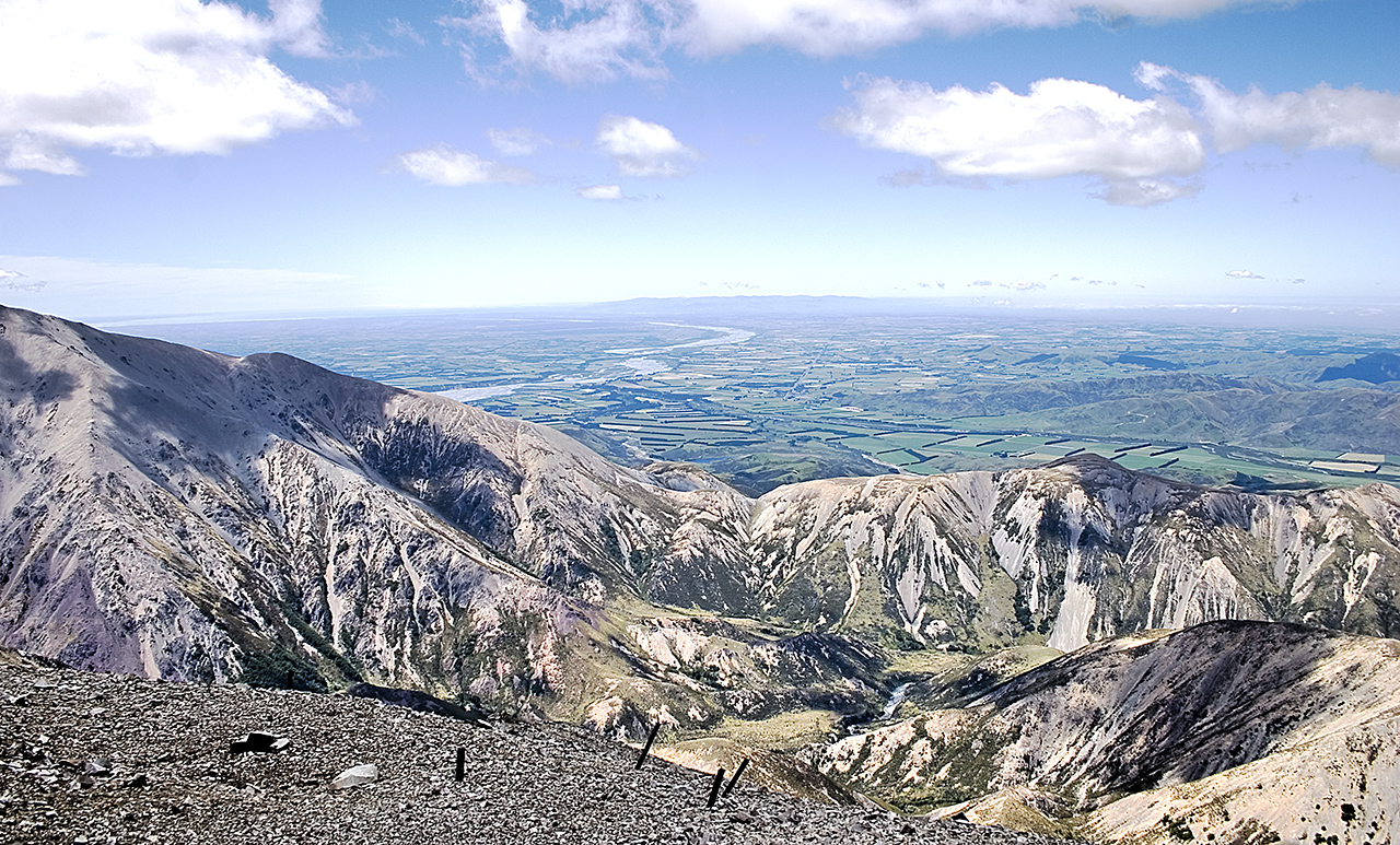 From Foggy Peak the views extend over Lake Lyndon, the Rakaia River and the Canterbury Plains.