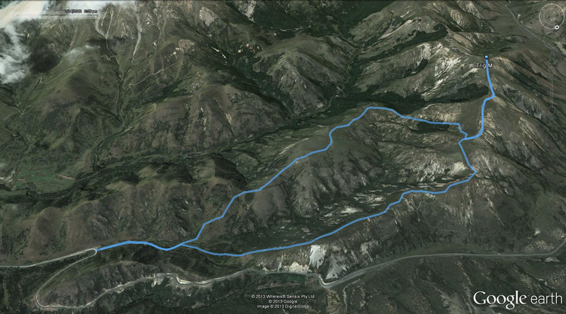 Circumnavigate the head of Coach Stream through a copse of beech forest and climb out onto the track junction with the Starvation Gully route (coming up from the west side of Porters Pass) at 1150m. Head higher to reach Trig M, which has a grand view of Lake Lyndon and the Waimakariri Basin as well as towards distant Lake Coleridge.
