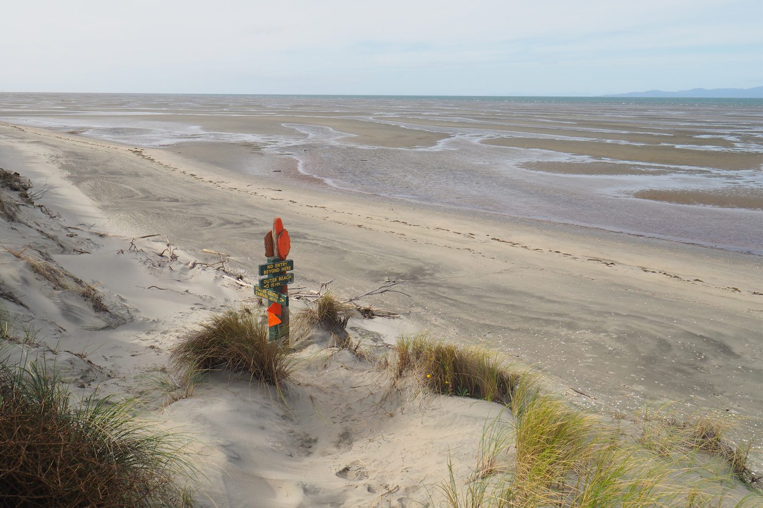 Walk along the beach for 4km to the second of two orange signs. From there the track takes you to Ocean Beach. Beyond this point the spit is closed to public access to protect the more than 90 species of birds that live there, including bar-tailed godwits, variable oystercatchers, Caspian terns and black swans.