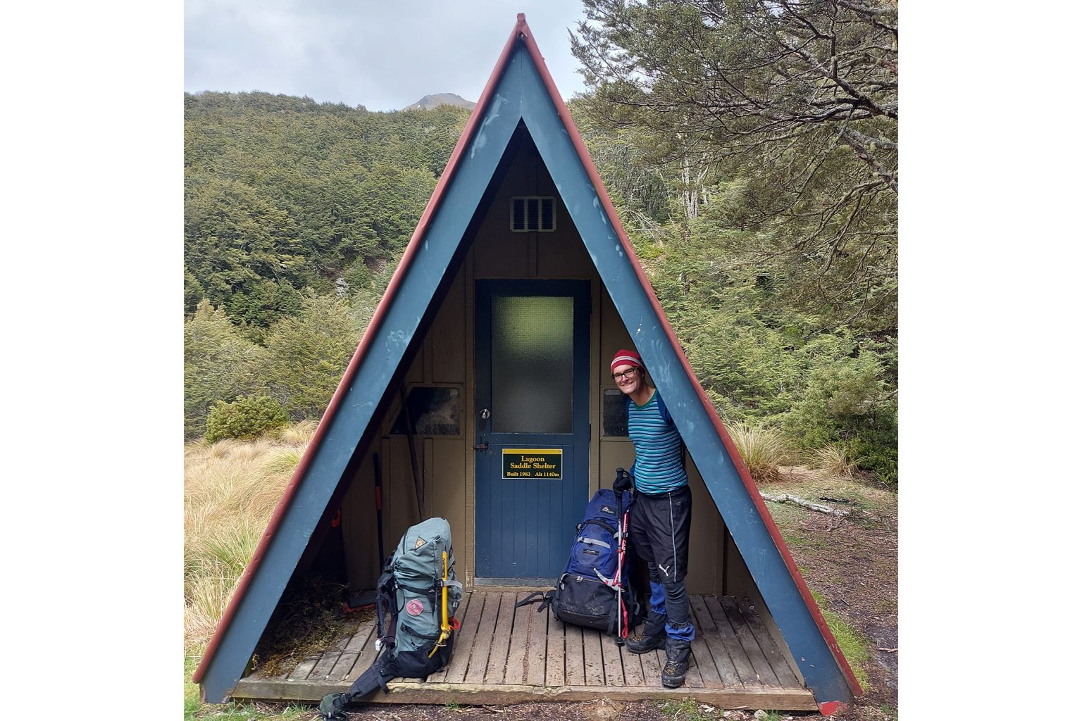 Lagoon Saddle A-Frame was built in 1983 at an altitude of 1140m. It doesn’t have a view but is pleasantly sited on an open terrace above Harper River, which is nothing more than a quiet stream at this point. It seems many use the hut as a ‘lunch and loo’ stop, given its proximity to the road end.