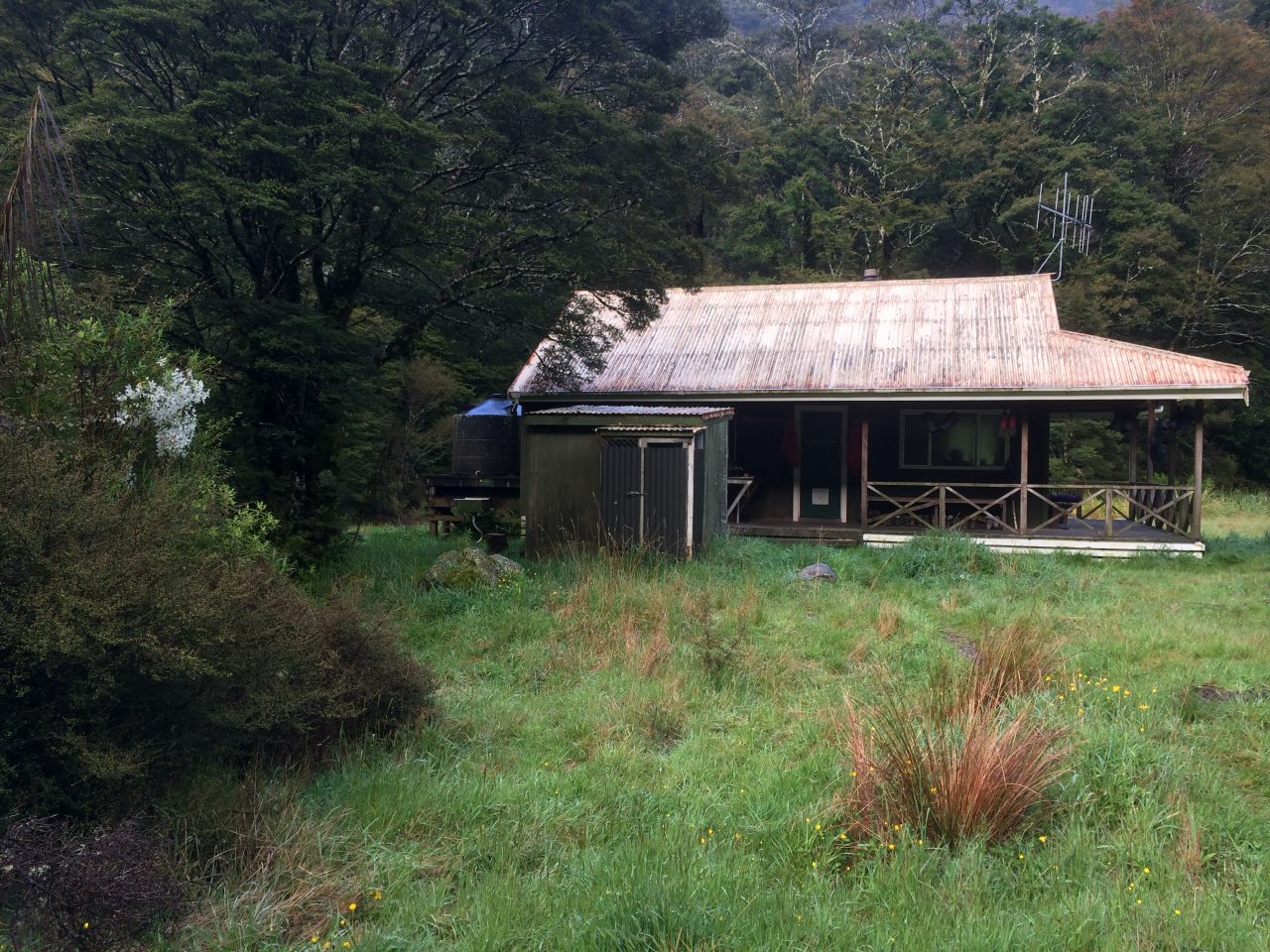 After close to five hours, a steep descent brought us to the river, a swingbridge and a sign pointing to the hut, five minutes away. The hut – as huts almost always are – was a welcome sight. It’s in a perfect setting in a large grassy clearing with a view of the river. We settled in, and thanks to a committed few who got the fire going, we had a cosy night and woke to dry clothes the next morning.