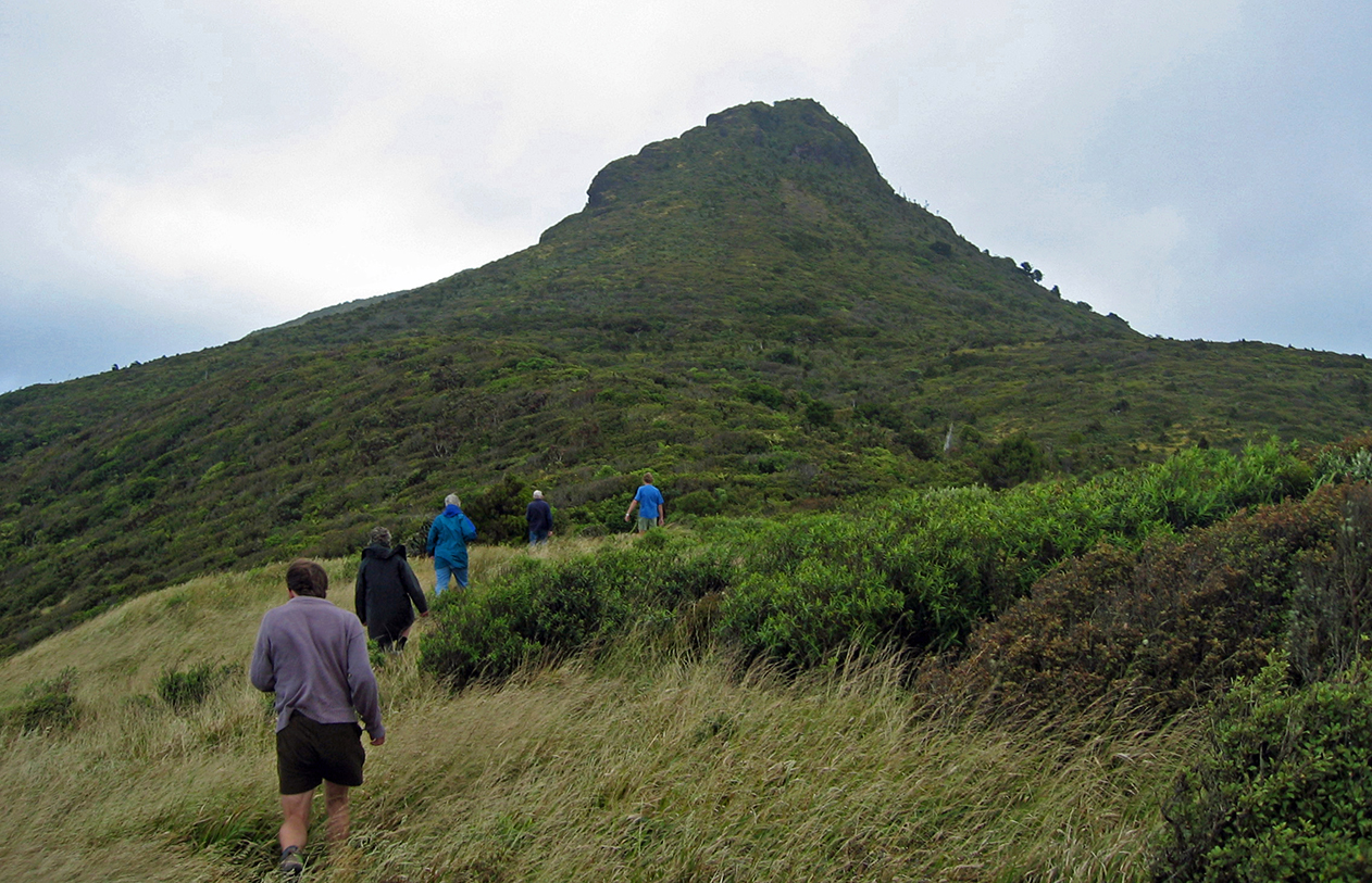 From here, the gradient eases somewhat to Moehau Saddle. The hike is dangerous in rain or low cloud due to poor visibility.
