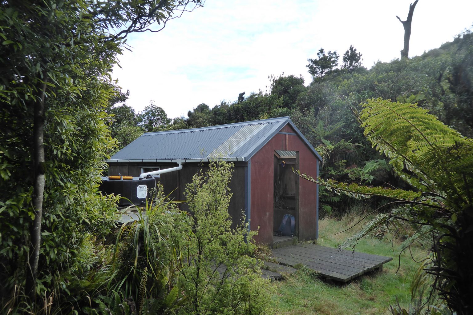 Turn right to reach Motutapere Hut, 30 minutes away and just off the track to the right in a secluded hollow. This cosy three-bunker is managed by the Thames Valley Deerstalkers Association. There is space for tents beside the hut.