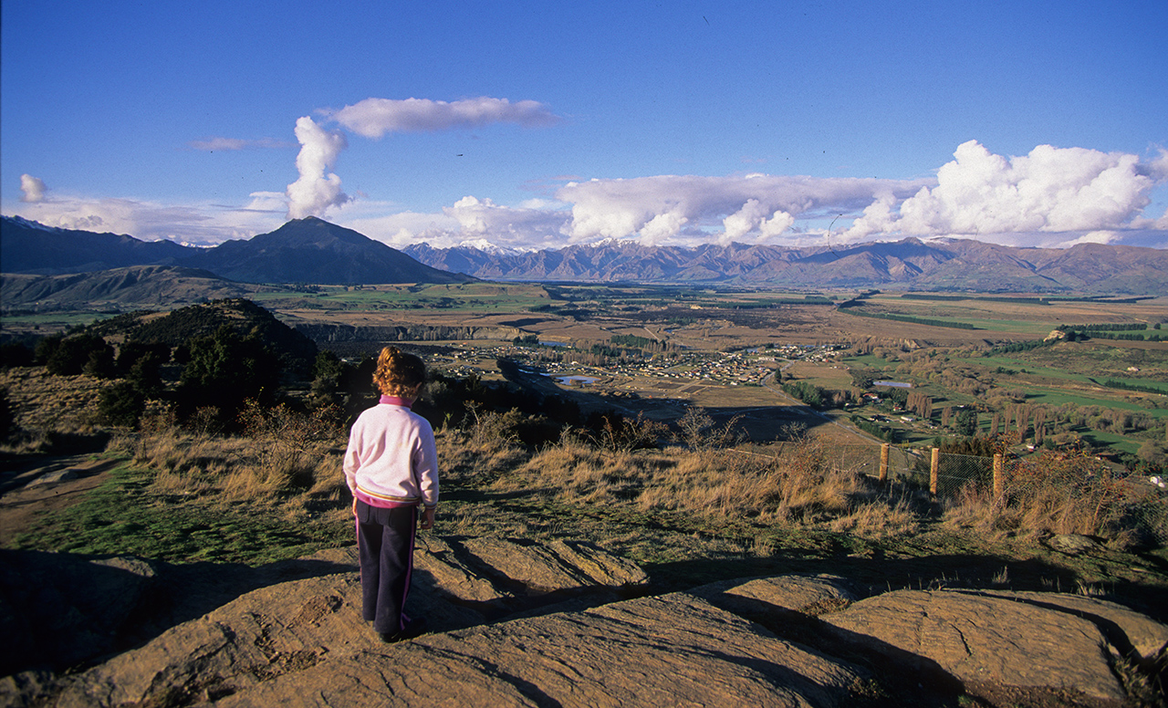 The high rocky summit of Mt Iron was once an ,island, surrounded by a sea of ice pushing out from the immensely deep beds of Lakes Wanaka and Hawea, which it had gouged. The Grandview and Pisa ranges, east and south, formed a natural fence, forcing the ice into the fissure of the Clutha Valley which it deepened as the tongue narrowed.