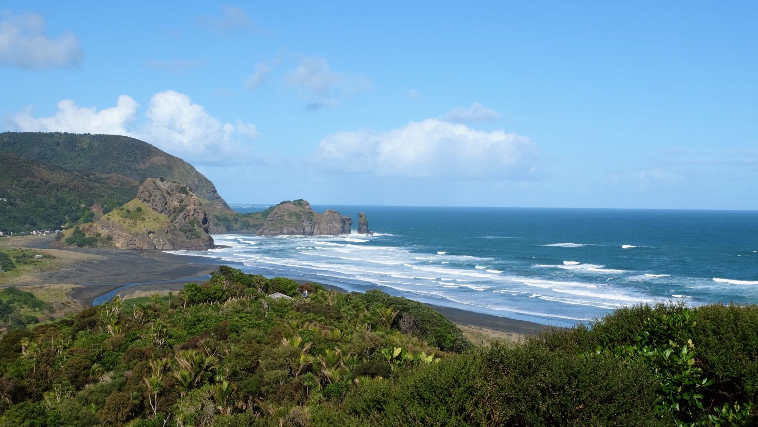Continue down Laird Thomson Track to North Piha Beach. The track is shaded nearly all day and can be slippery after rain. It’s then a short walk across black sand to a path leading through the dunes and eventually to North Piha Road, from where it’s 10min to your car.