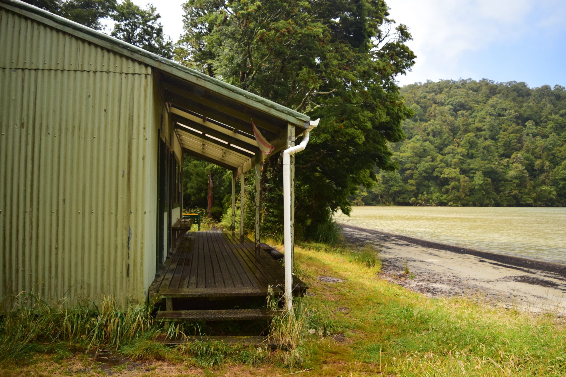 The serviced 18-bunk hut is right on the lake, which is covered in golden sand with crystal clear waves lapping the shore.
