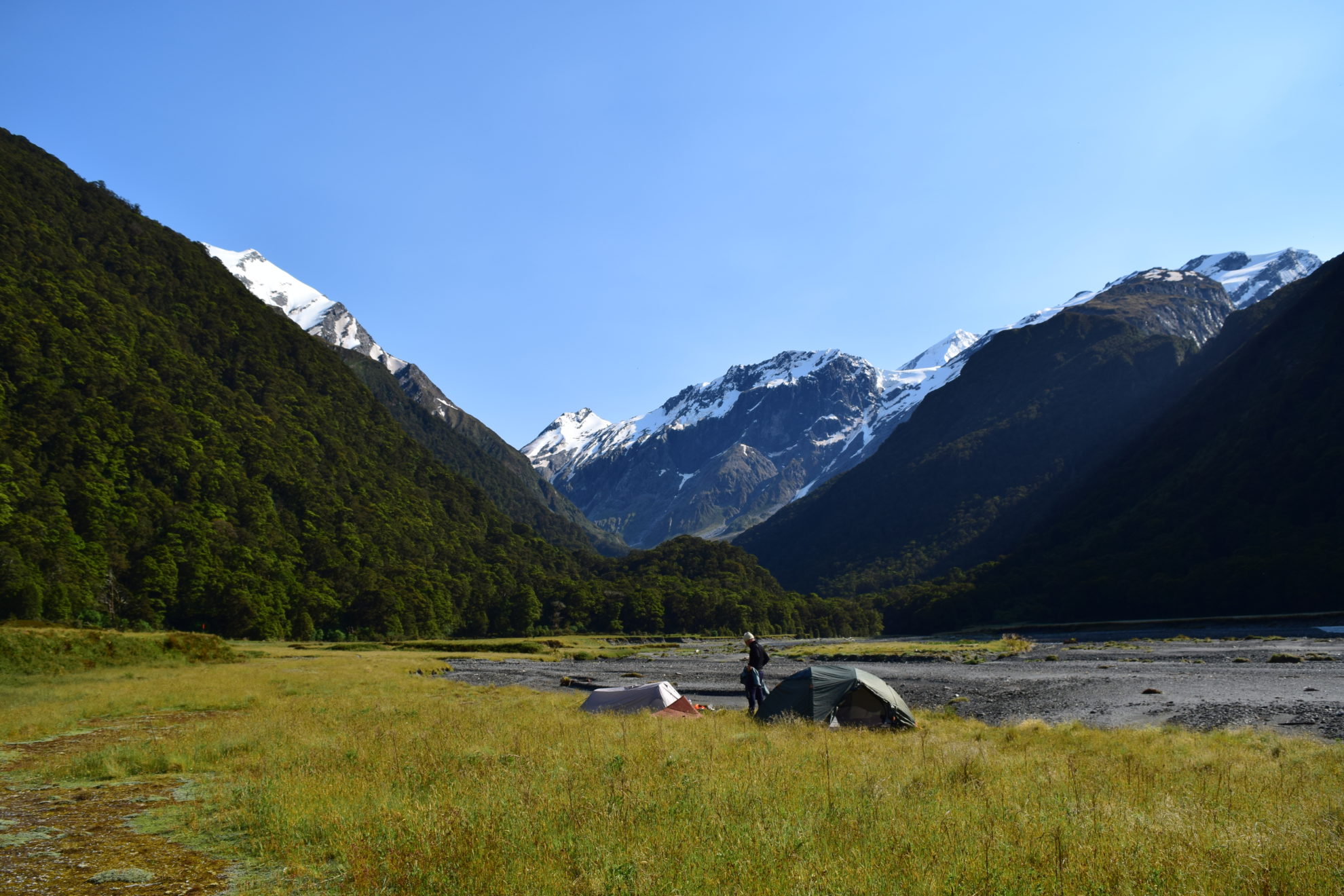 On a riverside sandwiched between spectacular peaks near the head of the West Matukituki Valley, Shovel Flat offers an accessible campsite to experience the grandeur of Mt Aspiring National Park.