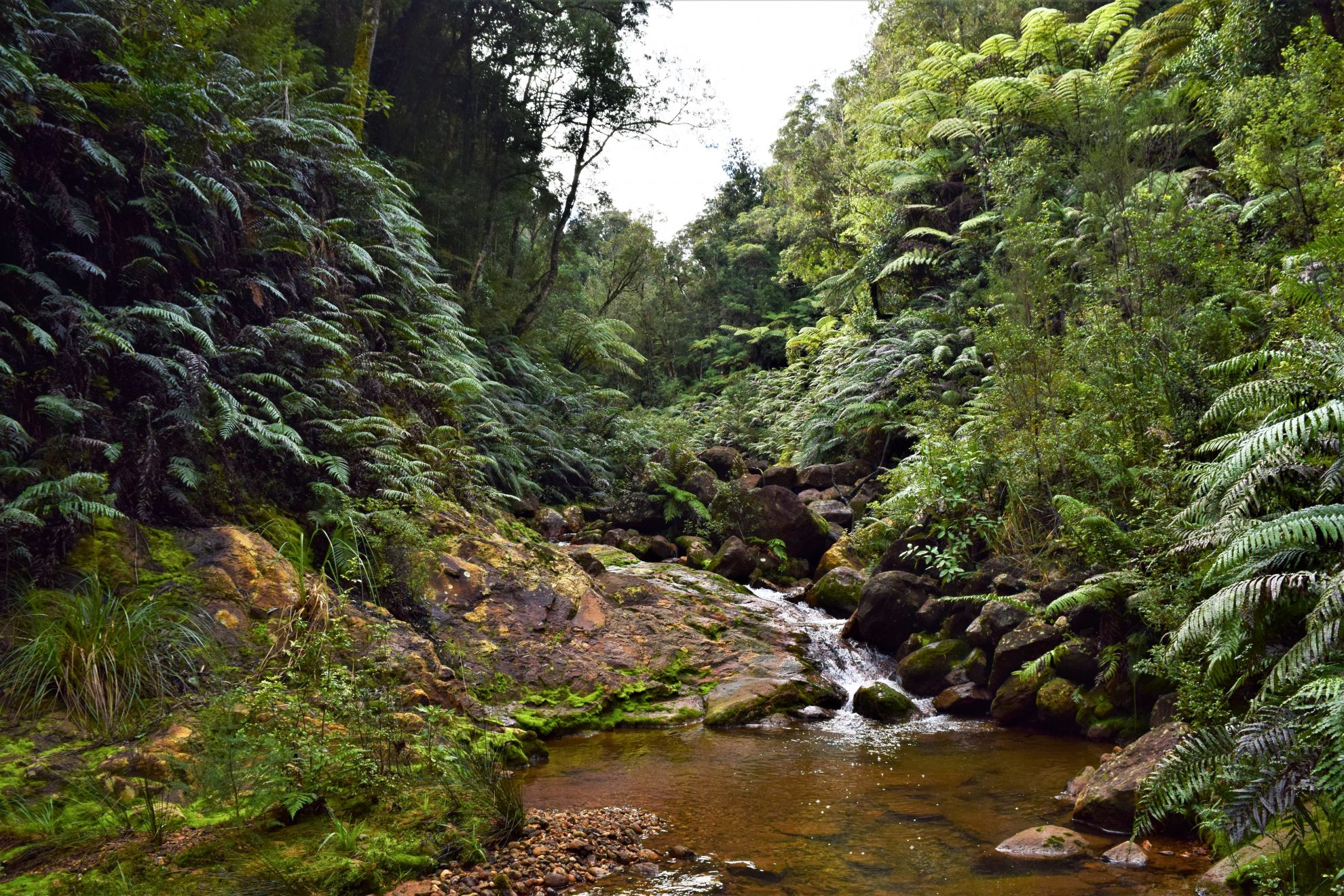 The track follows the cascading stream, passing numerous fern-lined swimming holes.