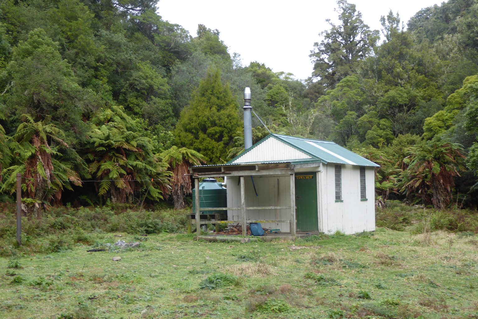 At this junction, veer north along flats for 500m to Tawa Hut, which is located in a grassy clearing above Kahunui Stream. The hut and the Moanui Road car park are at much the same altitude, so expect the return journey to take about as long as the trip in.