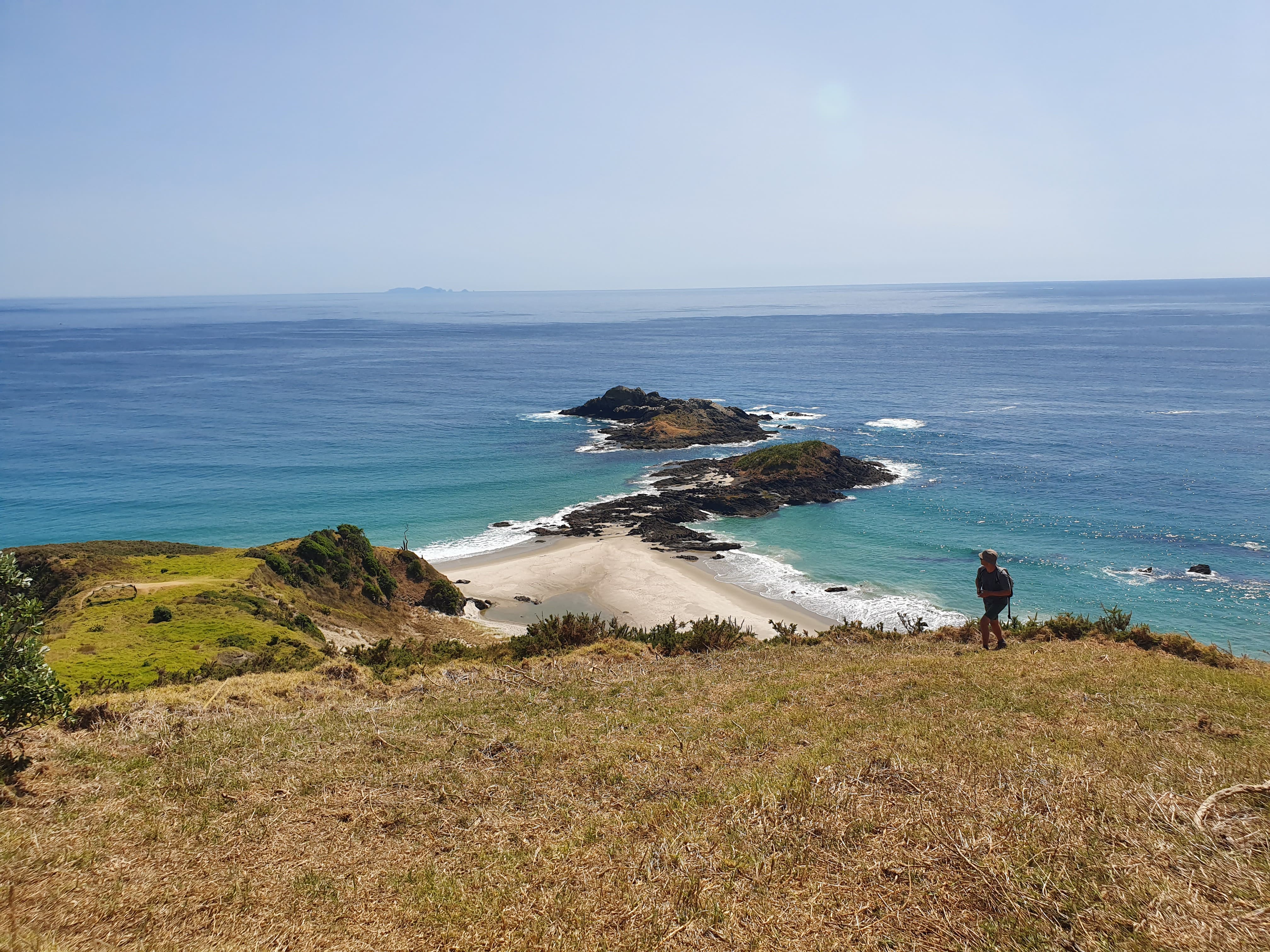 The rock pillar of the Te Whara summit rises a near-vertical 476m above the sea. From this sheer vantage point, you get some of the best coastal views in Northland.