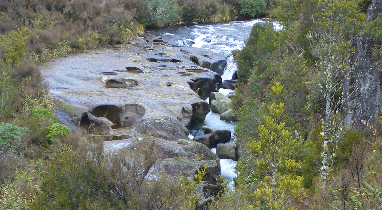 The track passes through mostly re-growth forest at first before entering an area of scrub with grass clearings where frosts prevent any seedlings from establishing. Once the track rises out of the frost pocket you are among giant trees until you come to the new Waihaha Hut beautifully sited with huge rimu surrounding and the […]