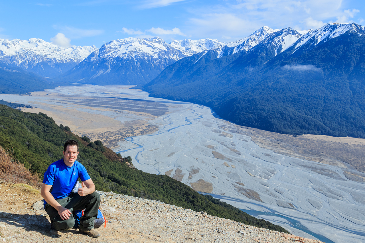 Steven Russell enjoyed the views of the Waimakariri from Bealey Spur, Arthur's Pass NP