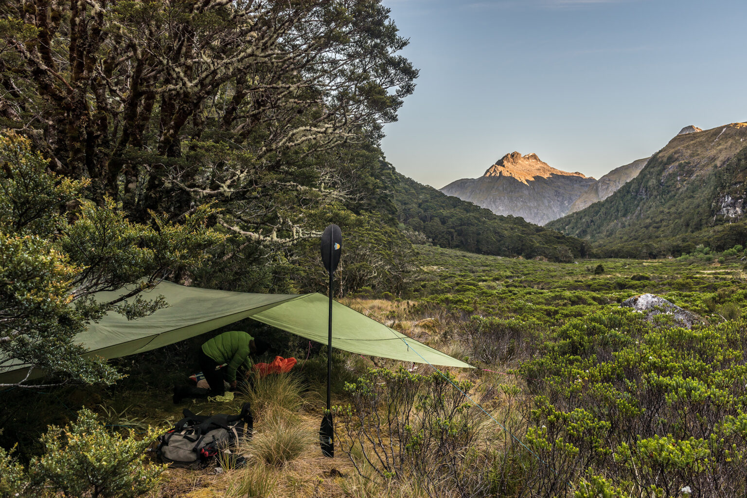 Once, during a 24-hour enforced stop, I set my flysheet low during overnight torrential rain and lifted it higher during the daytime when light rain fell so I could watch the birds in the clearing. I stayed drier than a couple in a nearby tent where condensation built up in their enclosed space.