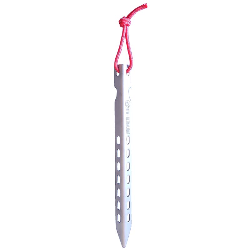 Titanium V-Stakes with improved strength and holding power while being lighter and more compact than Y-Stakes or Shepherd’s Hooks. Will stack tightly to limit noise and size. For use in compact and loose soils. 10.5g. www.kiwiultralight.co.nz