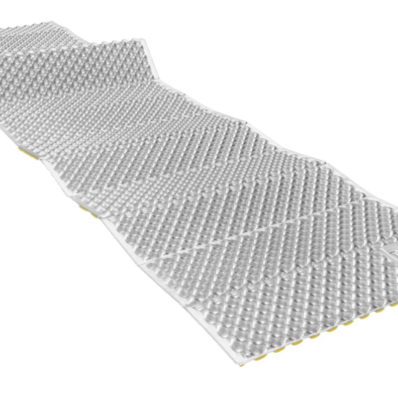 A closed-cell foam sleeping mat with compact accordion-style shape and heat-trapping dimples. A reflective ThermaCapture coating slows radiant heat loss and increases warmth by nearly 20%. 2.0 R-Value. 410g. www.ampro.co.nz