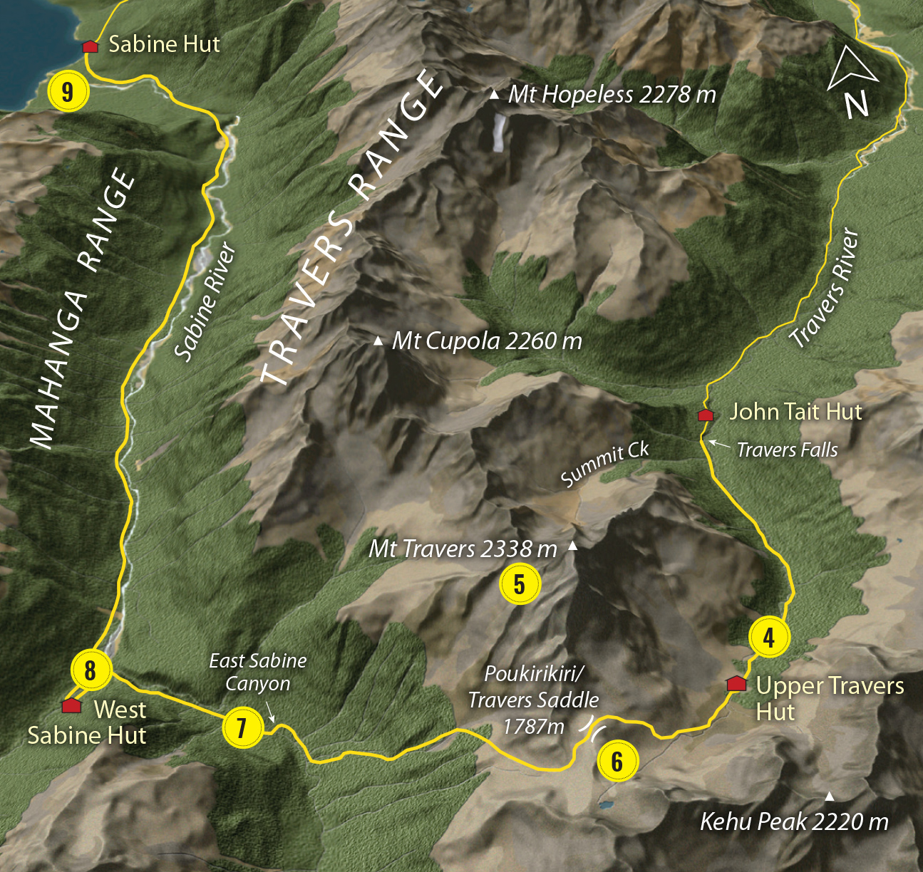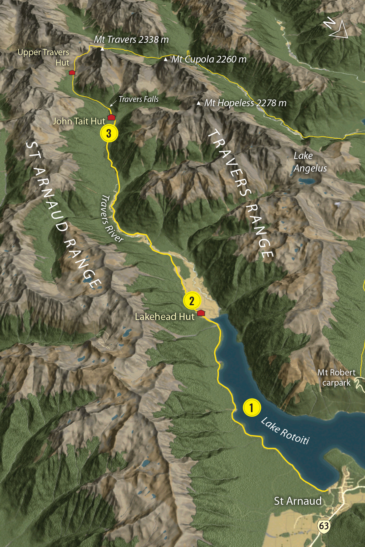 Taking in both of the park’s two large lakes, Rotoiti and Rotoroa, two of its major rivers, the Sabine and Travers, and one high alpine pass at Travers Saddle, the diversity of this walk is perhaps unrivalled elsewhere in New Zealand for a track of this standard and accessibility.