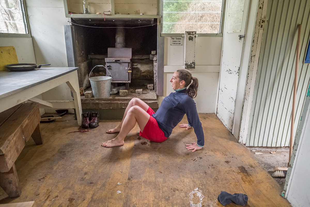 The upward plank is a bit like an upside-down press-up. It can be an excellent stretch for the shoulders and chest muscles, particularly after a long day of carrying a heavy pack. Here are two variations: