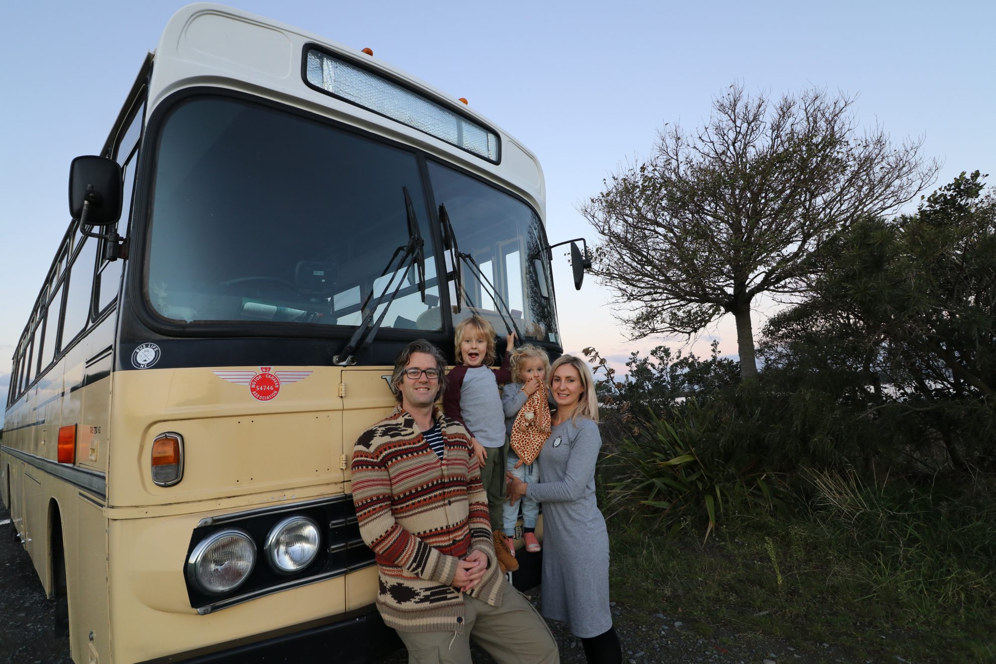 Andy Cleverley and Amber Mackintosh have been living in their 1987 Volvo bus for almost a year with their two children, Jake (six) and Daisy (three). They were living in Christchurch during the 2011 earthquake, and when they found themselves trapped in a highrise apartment building on the verge of collapse, they took a hard look at how they were living.