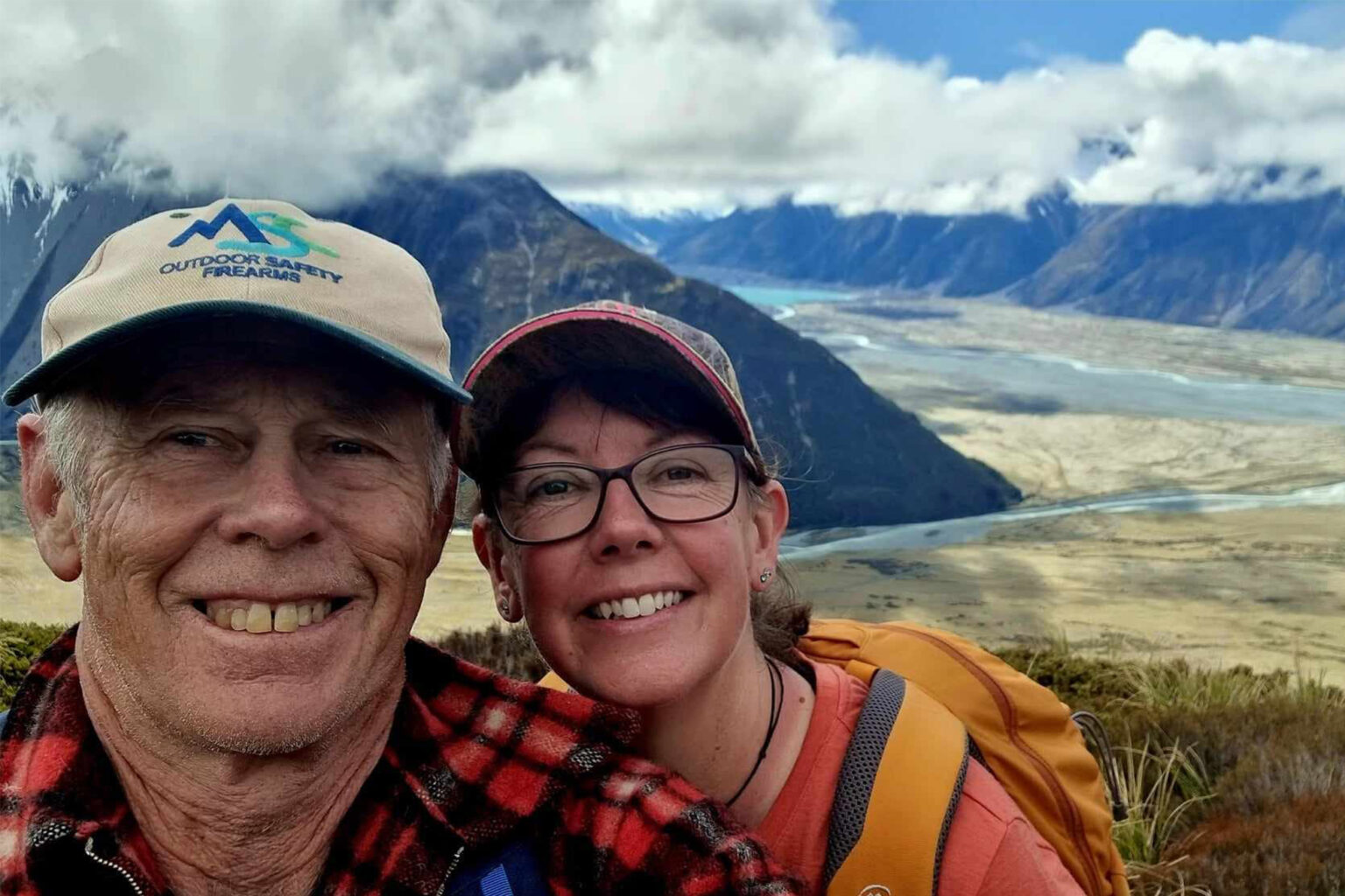 Both are ardent trampers. Glazier Pete grew up in Mt Somers but was living in Ashburton when he met Donna, an Otago-born and Timaru-based lifeguard and swimming instructor. They both go to the hills “for recharging, rejuvenation, a bit of peace and quiet”.