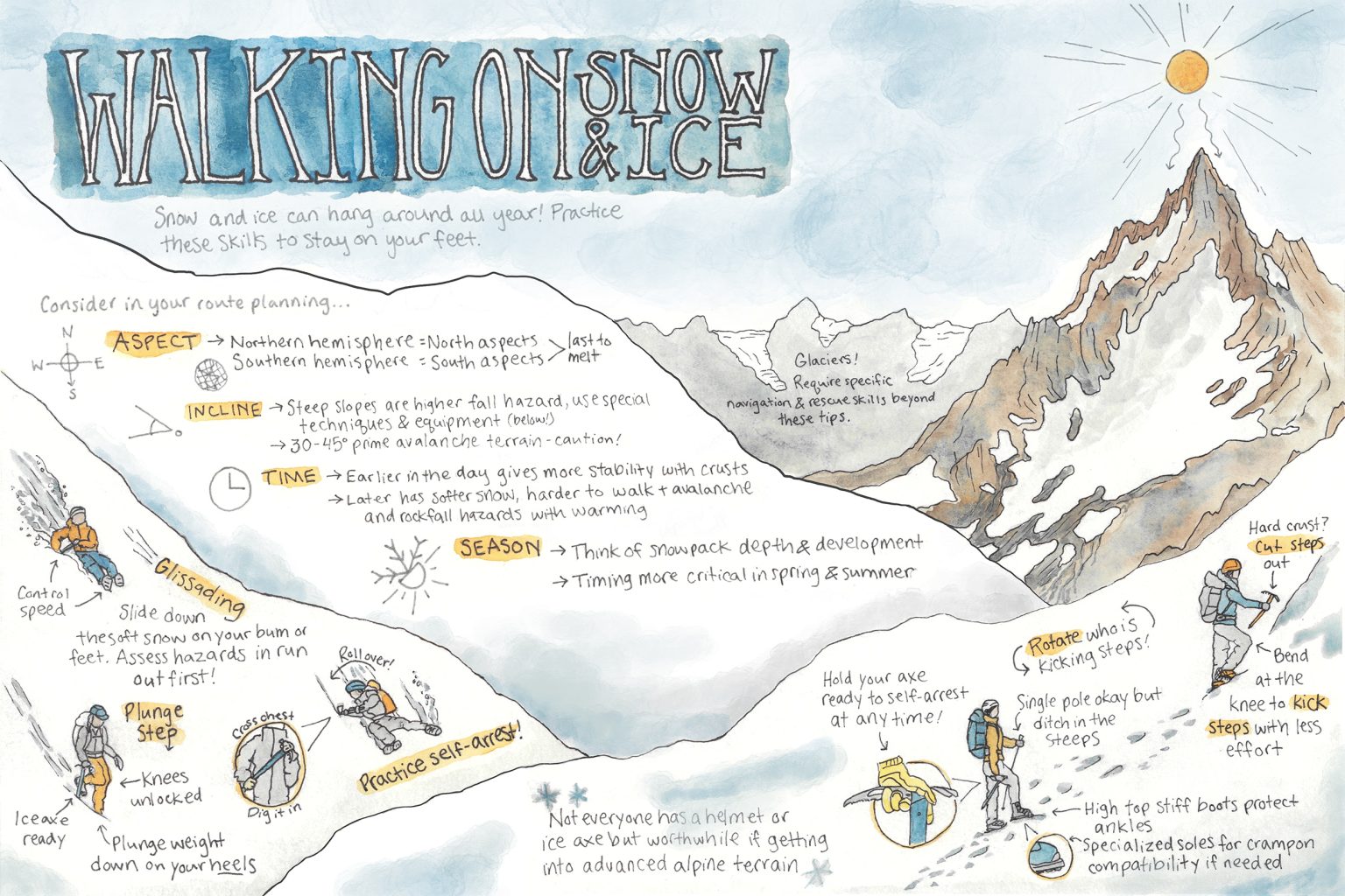Snow and ice can hang around all year! Practice these skills to stay on your feet. Glaciers! Require specific and rescue skills beyond these. Consider in your route planning… Aspect Northern hemisphere equals north aspectsSouthern hemisphere equals south aspects Incline Steep slopes are higher fall hazards, use special equipment and techniques30-45° prime avalanche terrain – caution! […]