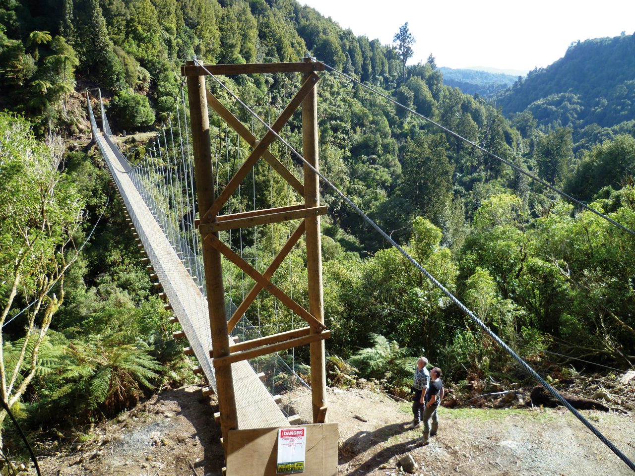 The new Mangatukutuku Bridge spans the Mangatukutuku Stream some 30m above water and is one of seven bridges planned for the trail, the longest being 110m and the highest more than 40m above water.