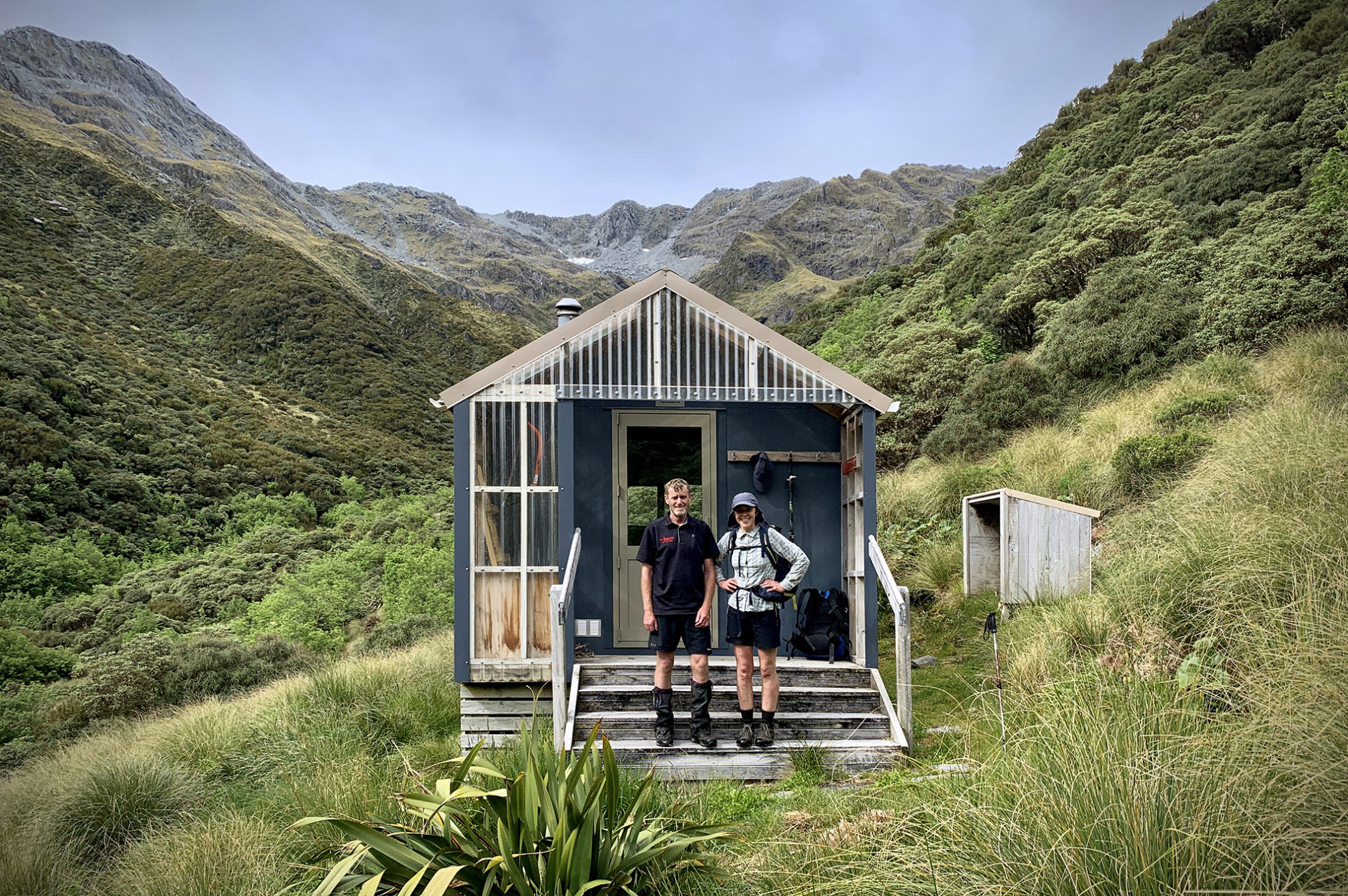 There are about 140 huts in the mountains between Haast and Karamea. Most were built in the mid-twentieth century for deer cullers. In the early 2000s, DOC struggled to maintain this large infrastructure and the huts’ existence was threatened. A group of enthusiastic volunteers was formed and Permolat now renovates and maintains many of the huts, assisted by funding from the Backcountry Trust. They’re also marking and maintaining tracks in the area, and we benefitted greatly from their hard work. On this circuit, huts range from cute two-person bivouacs to four- and six-person New Zealand Forest Service beauties and two larger modern DOC huts.