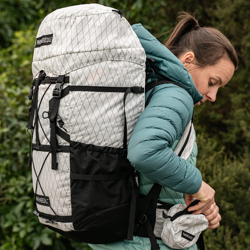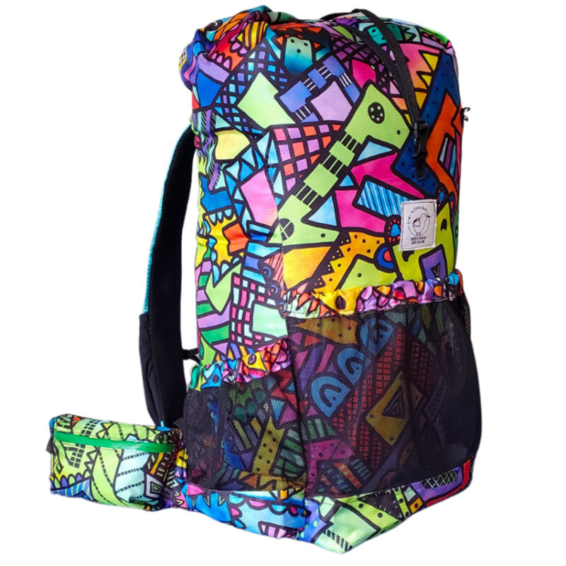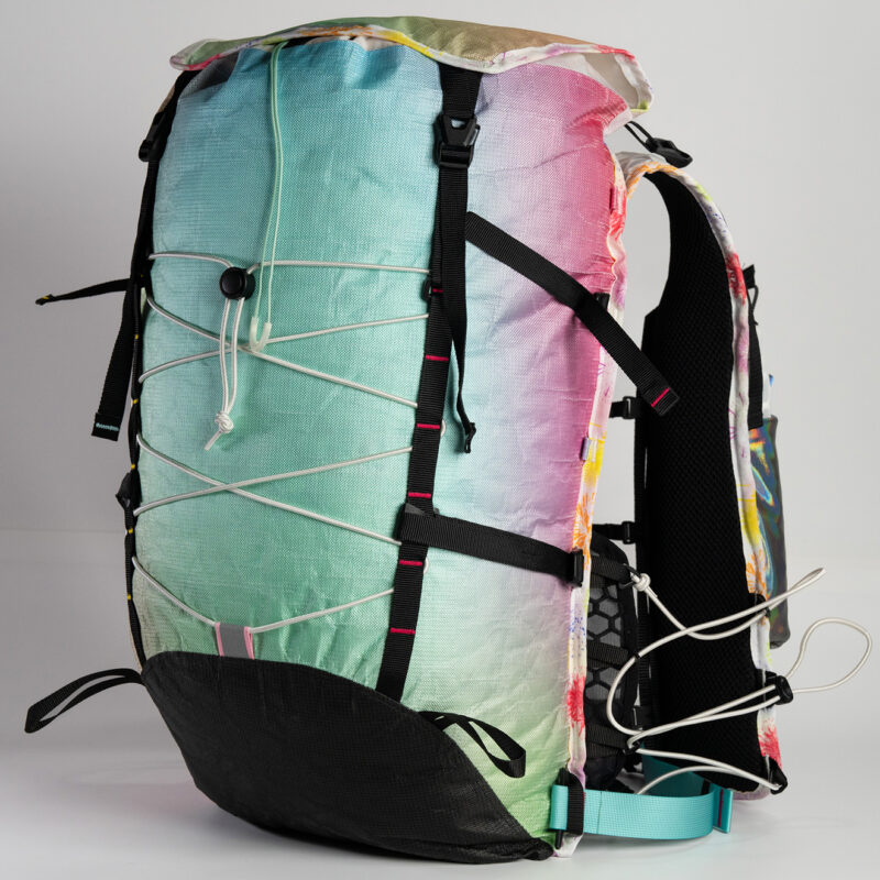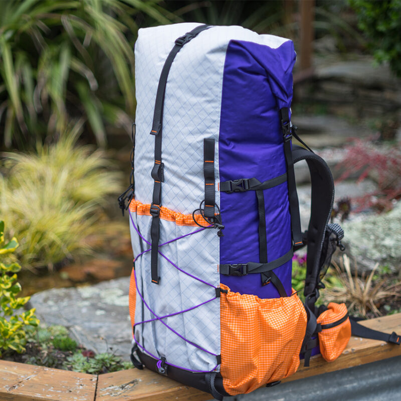 Using HyperD 300 fabric, this is an ultralight multiday pack that stands out with its unique patterns. It’s designed to carry an ultralight kit on any trip from day trips to thru-hikes. It’s frameless and has seven external pockets, a roll-down top, adjustable and removable hip belt, and custom torso length. 300-420g. www.kiwiultralight.co.nz