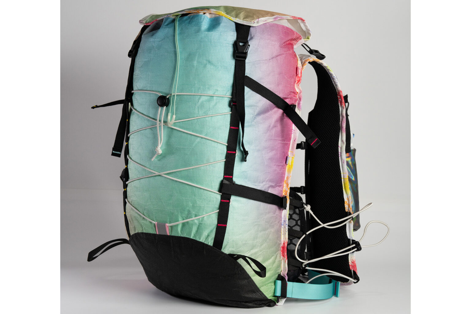 Using HyperD 300 fabric, this is an ultralight multiday pack that stands out with its unique patterns. It’s designed to carry an ultralight kit on any trip from day trips to thru-hikes. It’s frameless and has seven external pockets, a roll-down top, adjustable and removable hip belt, and custom torso length. 300-420g. www.kiwiultralight.co.nz
