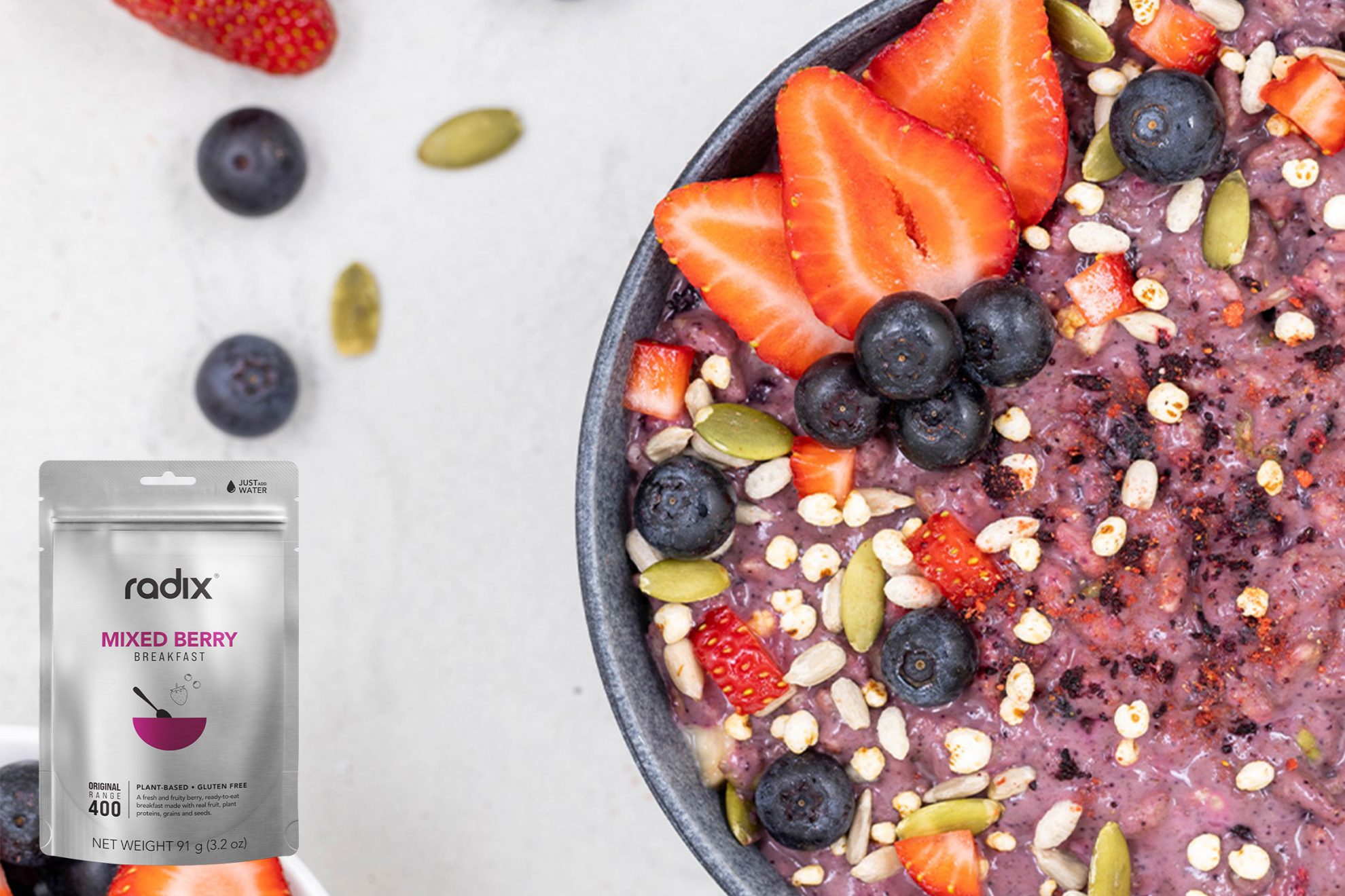 Made in the UK using slow-cooked natural ingredients and no preservatives, then dehydrated. Known for their varied flavour combinations, especially for vegans, their meals have a high energy profile. Packaging is soft-plastics recyclable.